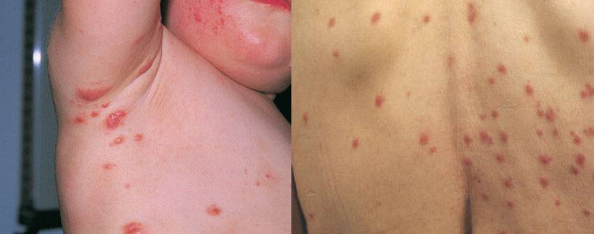 | Сыпь при чесотке локализованная в области подмышек и спины |