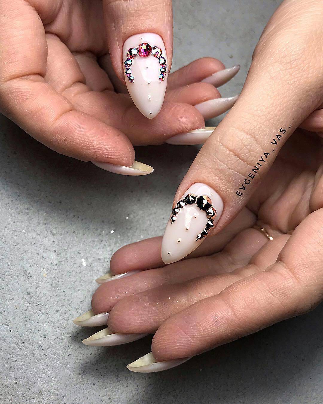Декор при помощи страз прекрасно сочетается с ногтевыми пластинами любой длины и формы. Короткие ногти гармонично смотрятся с блестящими акцентами и одиночными украшениями. Длинные ногти позволяют воплотить в реальность самые разные фантазии. Техника выполнения маникюра при этом совсем не имеет значения. Более стильного и красивого маникюра в 2021 году придумать просто невозможно.
