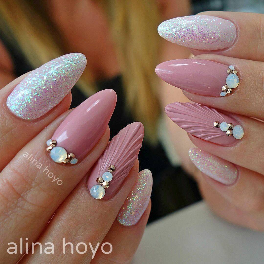 Такой вариант оформления может стать ярким украшением ногтевых пластин в повседневном маникюре. Однако нейл-дизайнеры советуют использовать такую вариацию для особых или торжественных случаев, так, как дизайн подразумевает использование объёмных украшений, которые могут быт не особо удобны в повседневной жизни. Суть идеи заключается в гармоничном сочетании объёмных узоров и фигурок лепнины с блестящими стразами. Дополнительно можно украсить декором соседние пальчики. Мера и гармоничное сочетание украшений на ногтевых пластинах в этом случае являются залогом успеха.