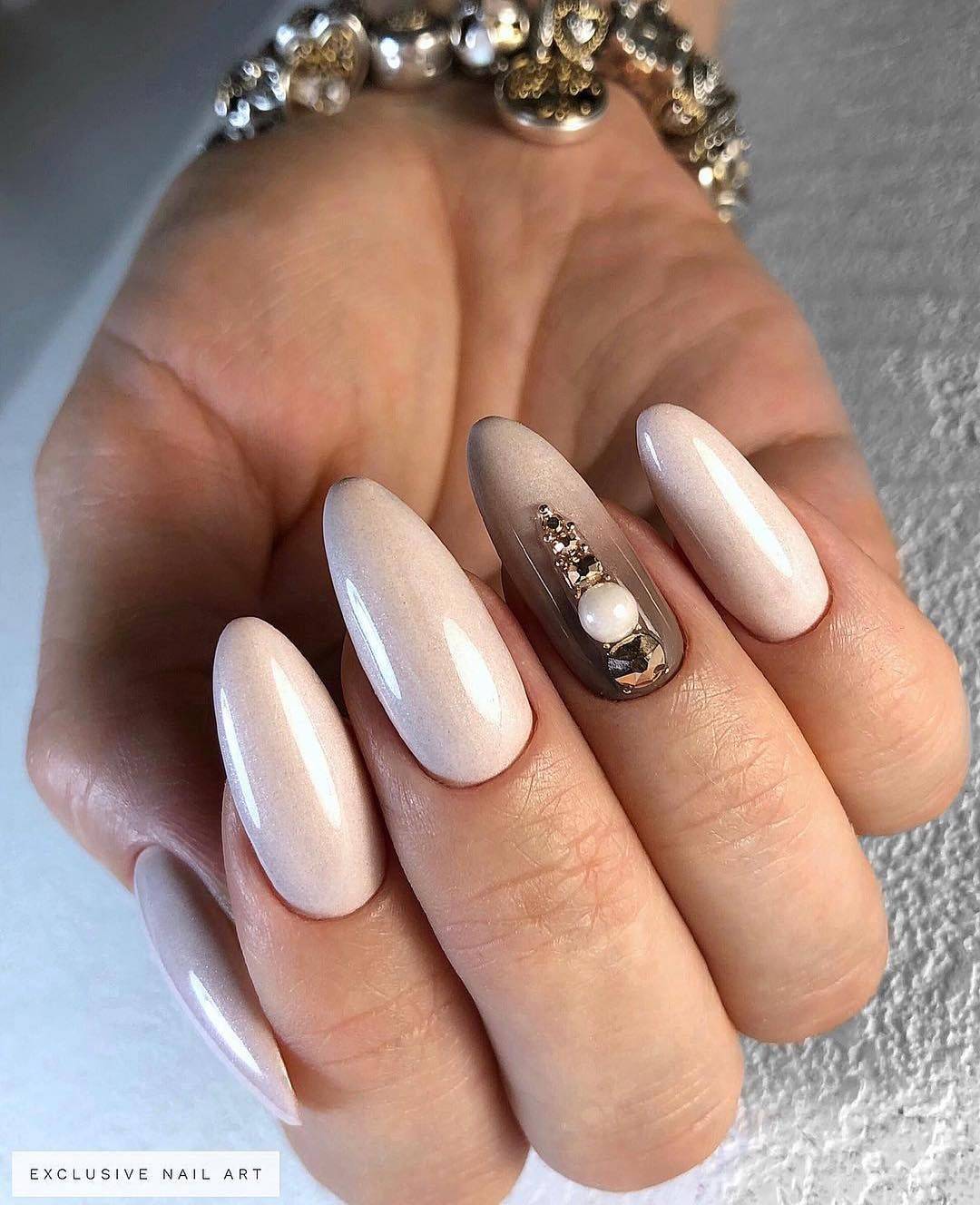 Главным правилом минималистического дизайна будет грамотно подобранная топовая база. Она должна быть бежевой, молочной или белоснежной. Так ваш мастер сможет удачно выполнить самый нежный дизайн, который прекрасно будет смотреться на утонченных дамах.