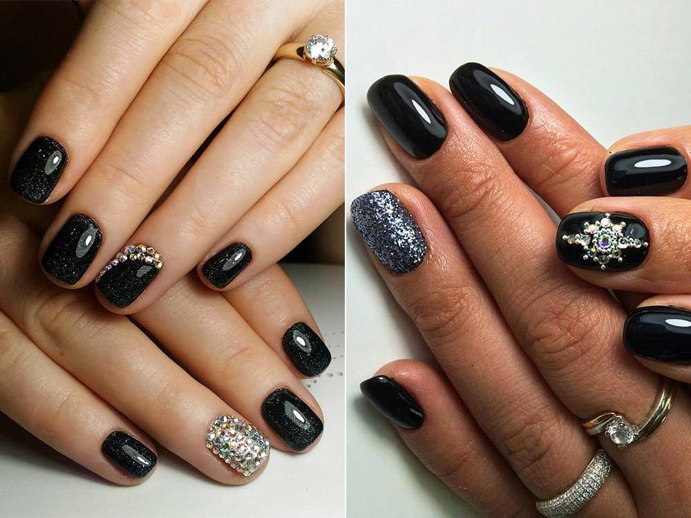 Для создания красивого, изысканного и элегантного нейл-арт-дизайна черного цвета, модница должна использовать только красивый и индивидуально подобранный декор, он может быть в виде со стразами и бульонками, камушками и горошинками, в него могут втираться разные блестки и так далее.