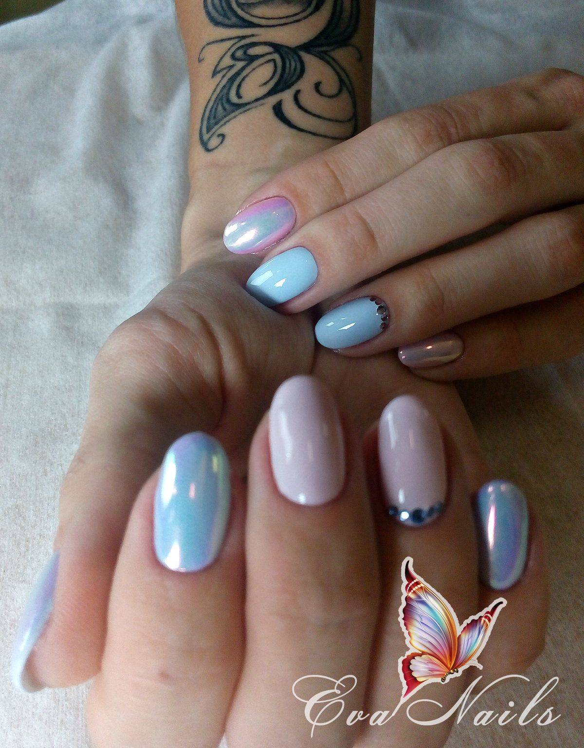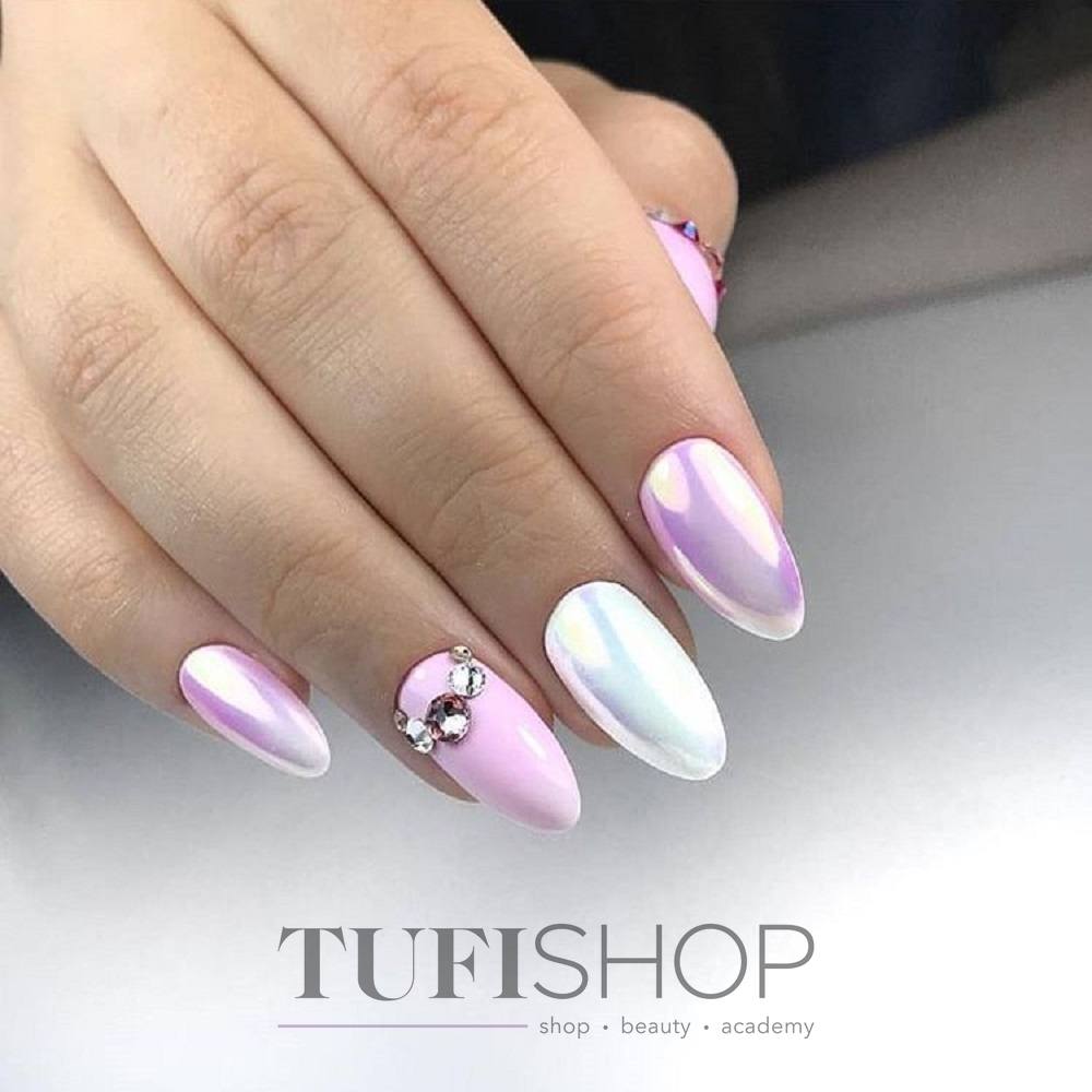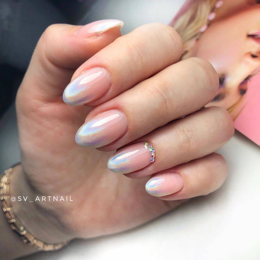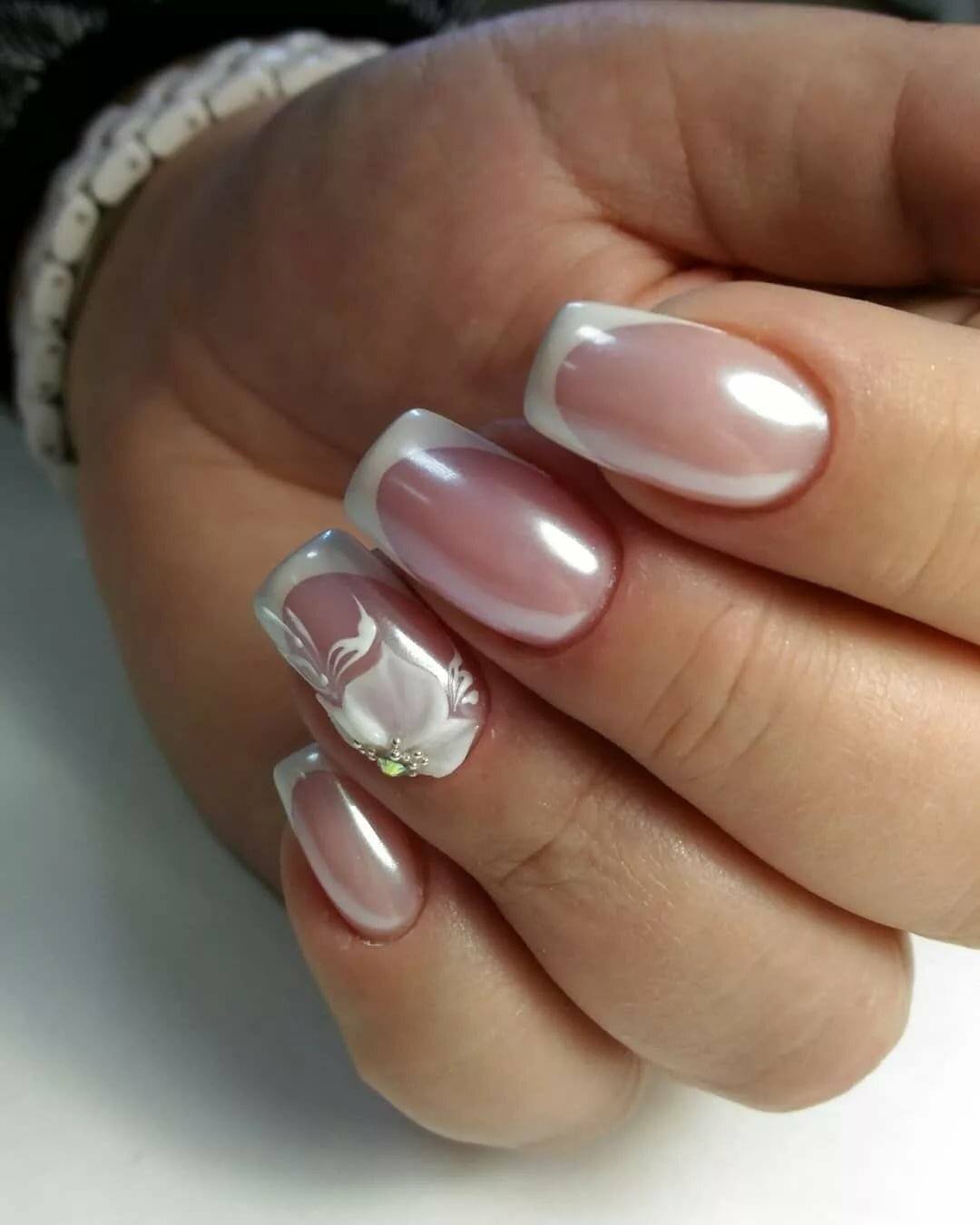 К нежным оттенкам относится вся пастельная цветовая палитра, многочисленные оттенки бежевого, серого, белого и других мягких тонов. Для выполнения нежного маникюра используйте серебряную, голографическую, зеркальную и другие разновидности втирки. Конечный вид маникюра будет зависеть от выбранного фона. Если вы не уверены в результате, то попробуйте сначала выполнить маникюр на типсах.