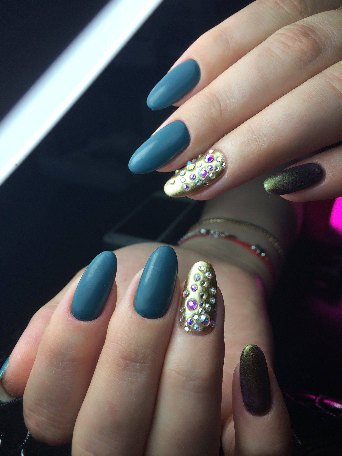 Камни на ногтях позволят создать эффект роскоши. Но если ногтевая пластина коротка, то большое количество страз сделает ногти визуально еще короче. Камни должны составлять часть узора, если он имеется поверх омбре. Чаще всего мастера выкладывают стразы по форме лунки.