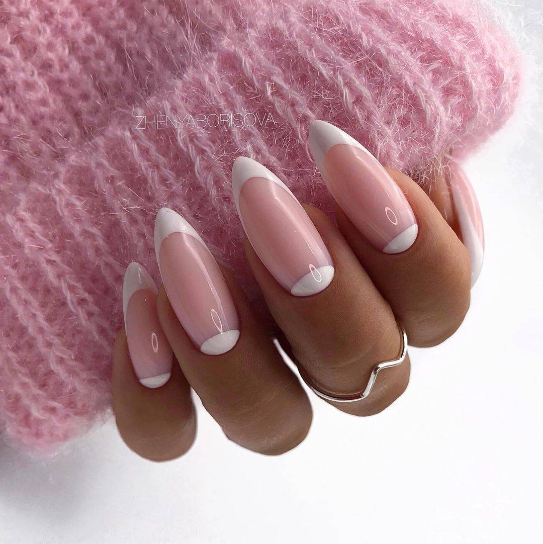Французский маникюр на миндальную форму ногтей — отличный повседневный стиль. Правда, из-за природной утонченности, к ним применяются другие требования к обпилу и покрытию.