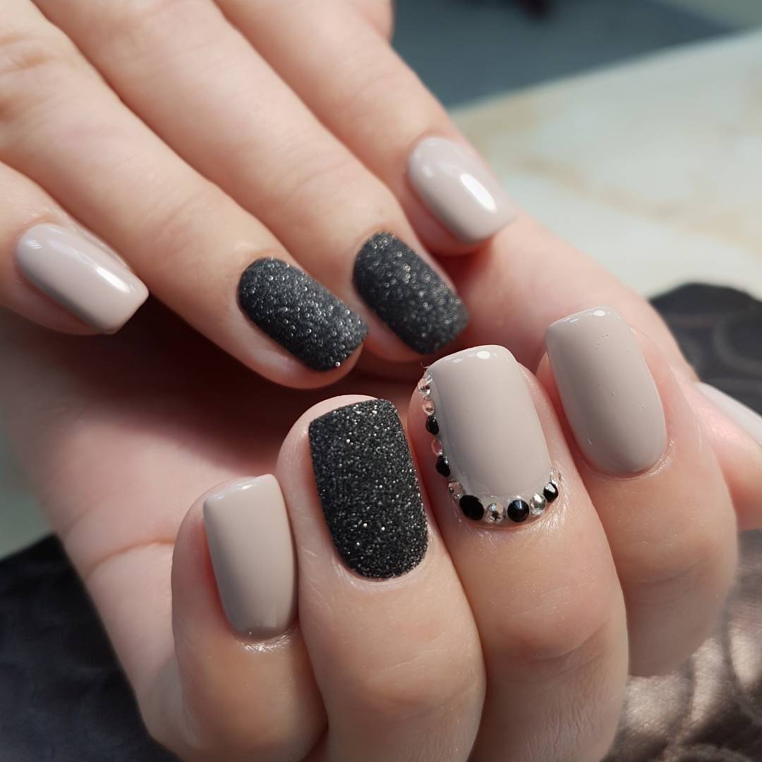Совет специалистов: монохромный нейл-дизайн на одном из ногтей разбавьте песчаной втиркой. Это облагородит маникюр в разы.