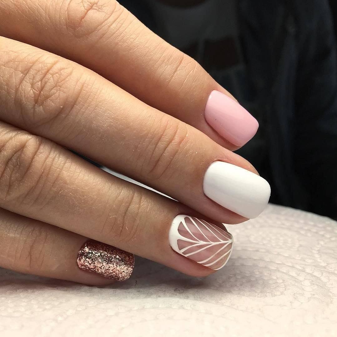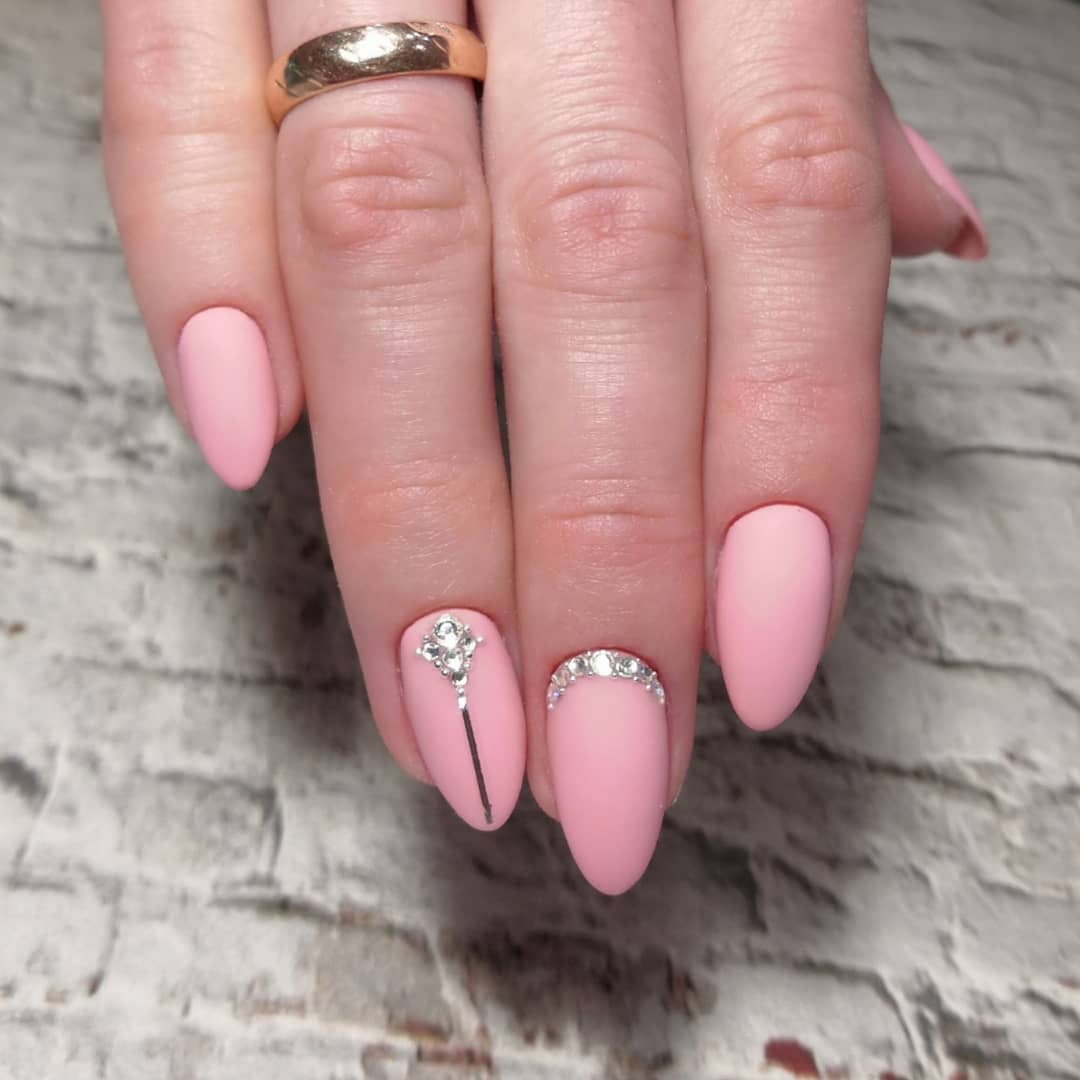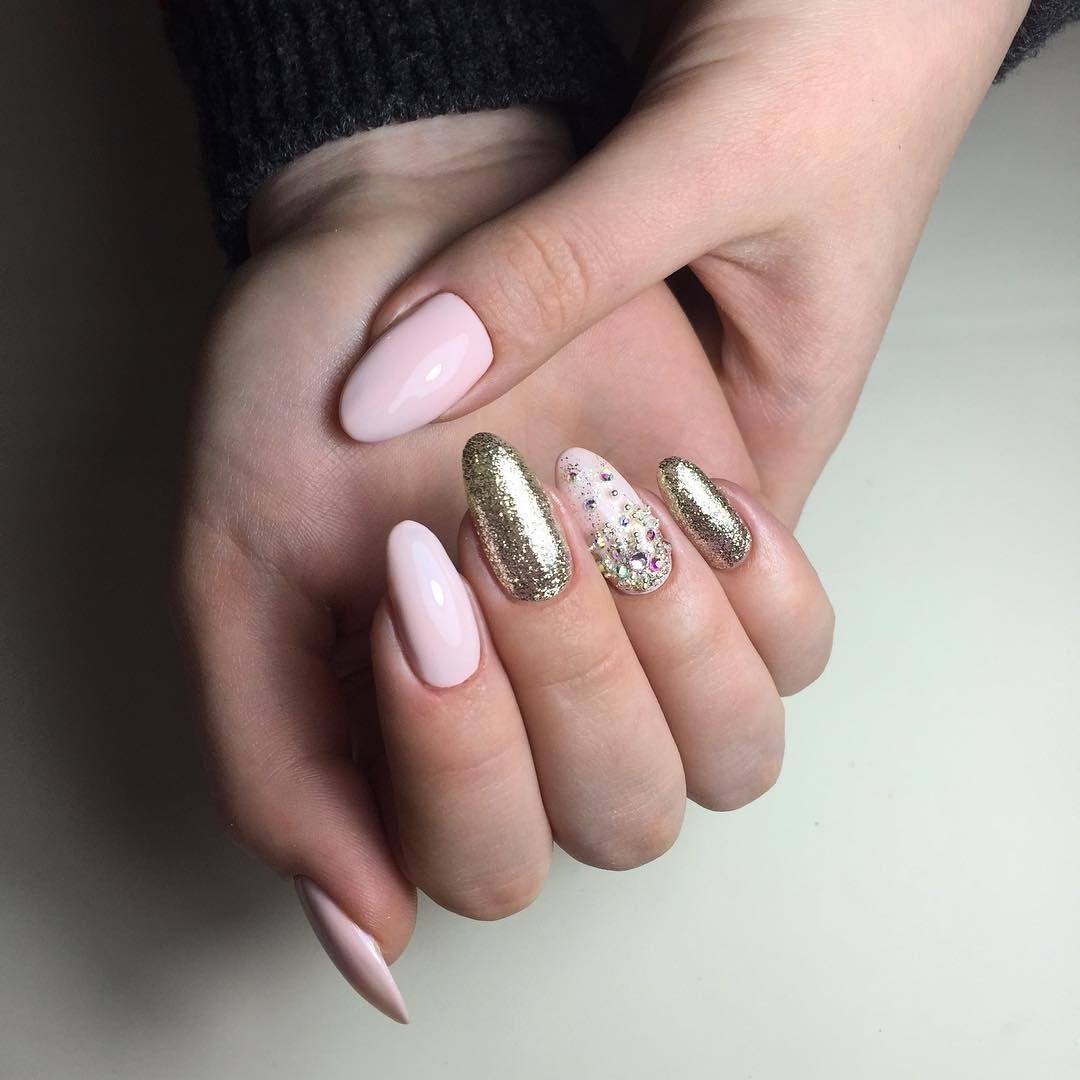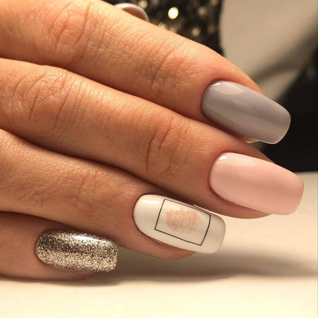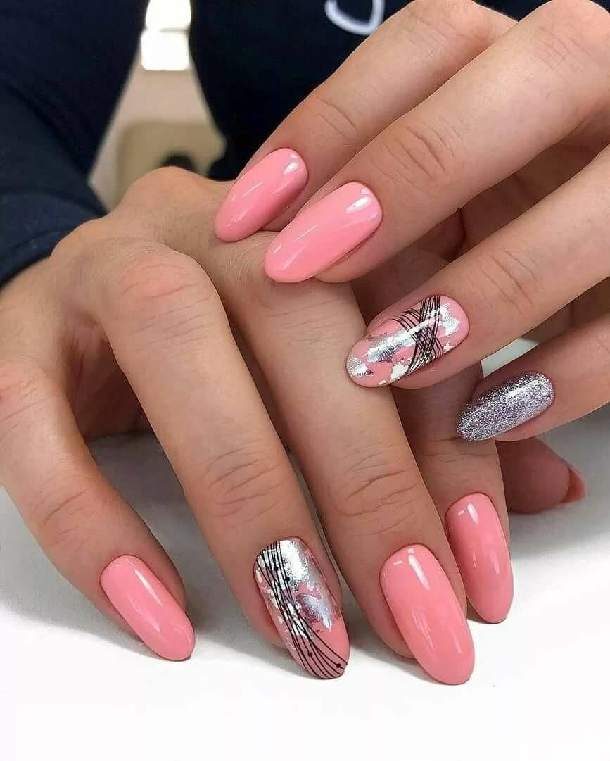- розовый – выглядит ярче и нежнее, чем серый маникюр. Может быть использован вместе с золотым или серебряным глиттером.