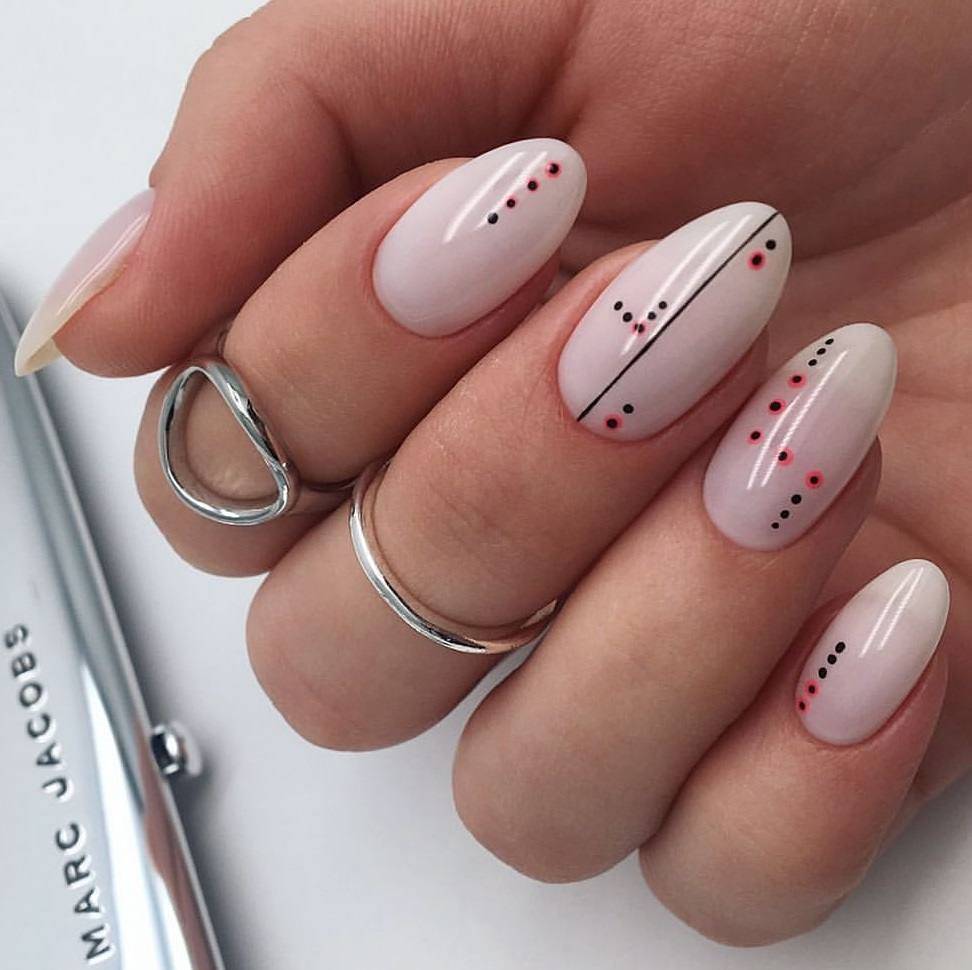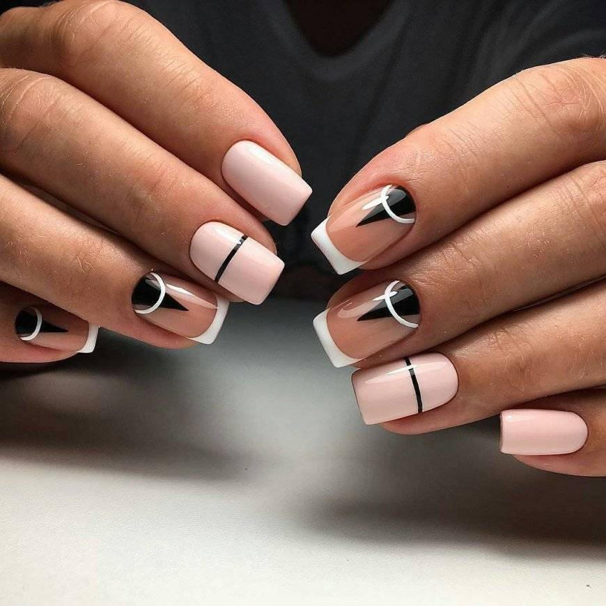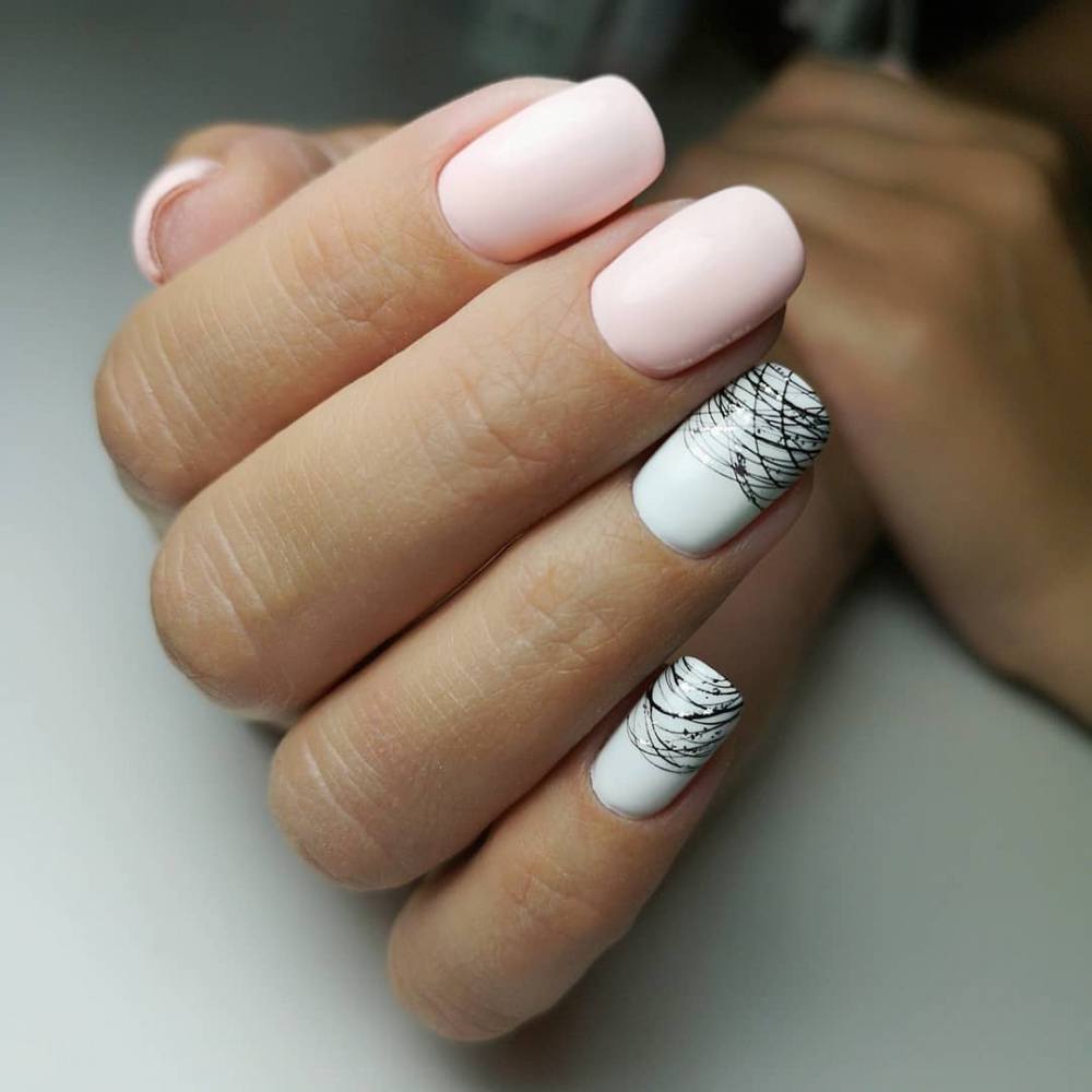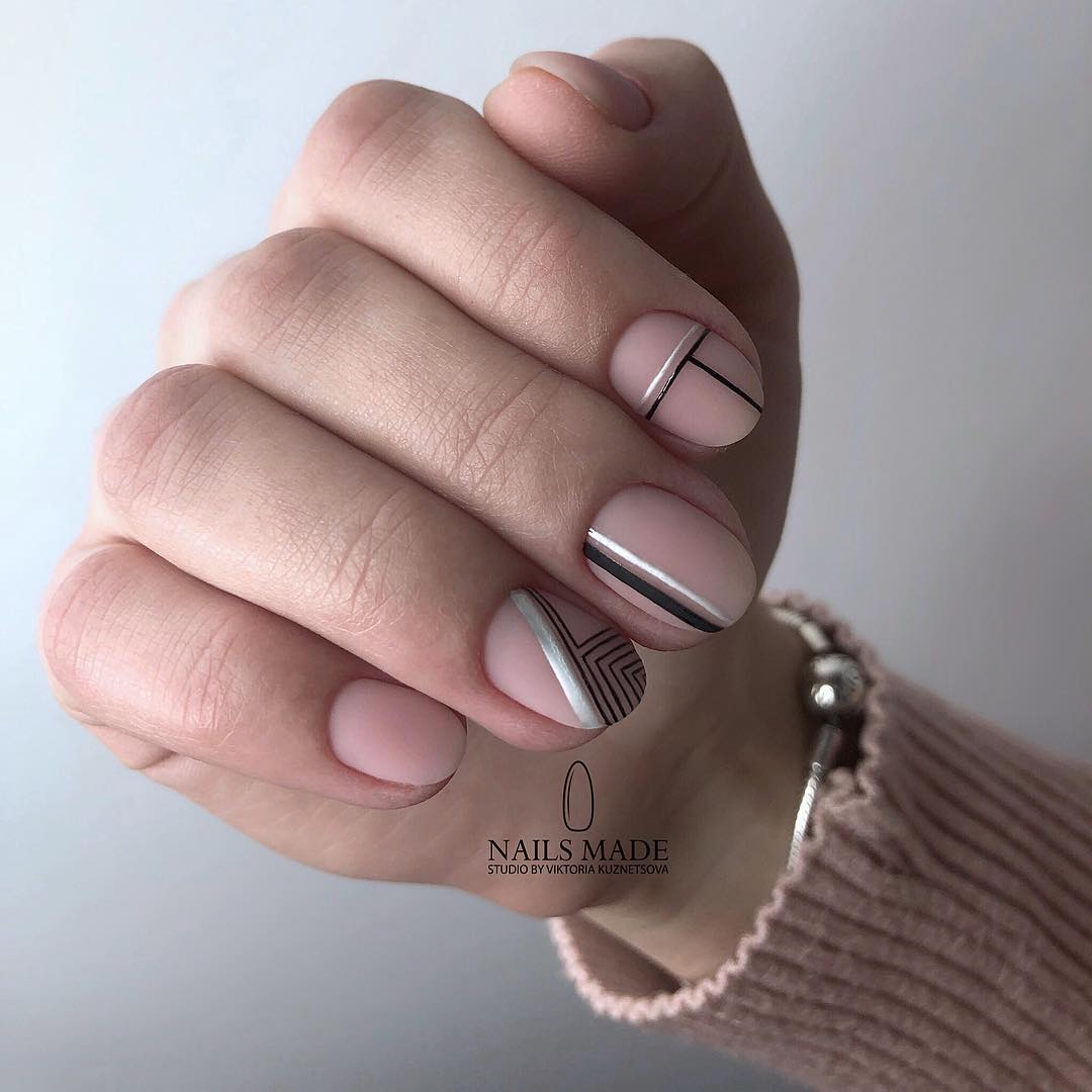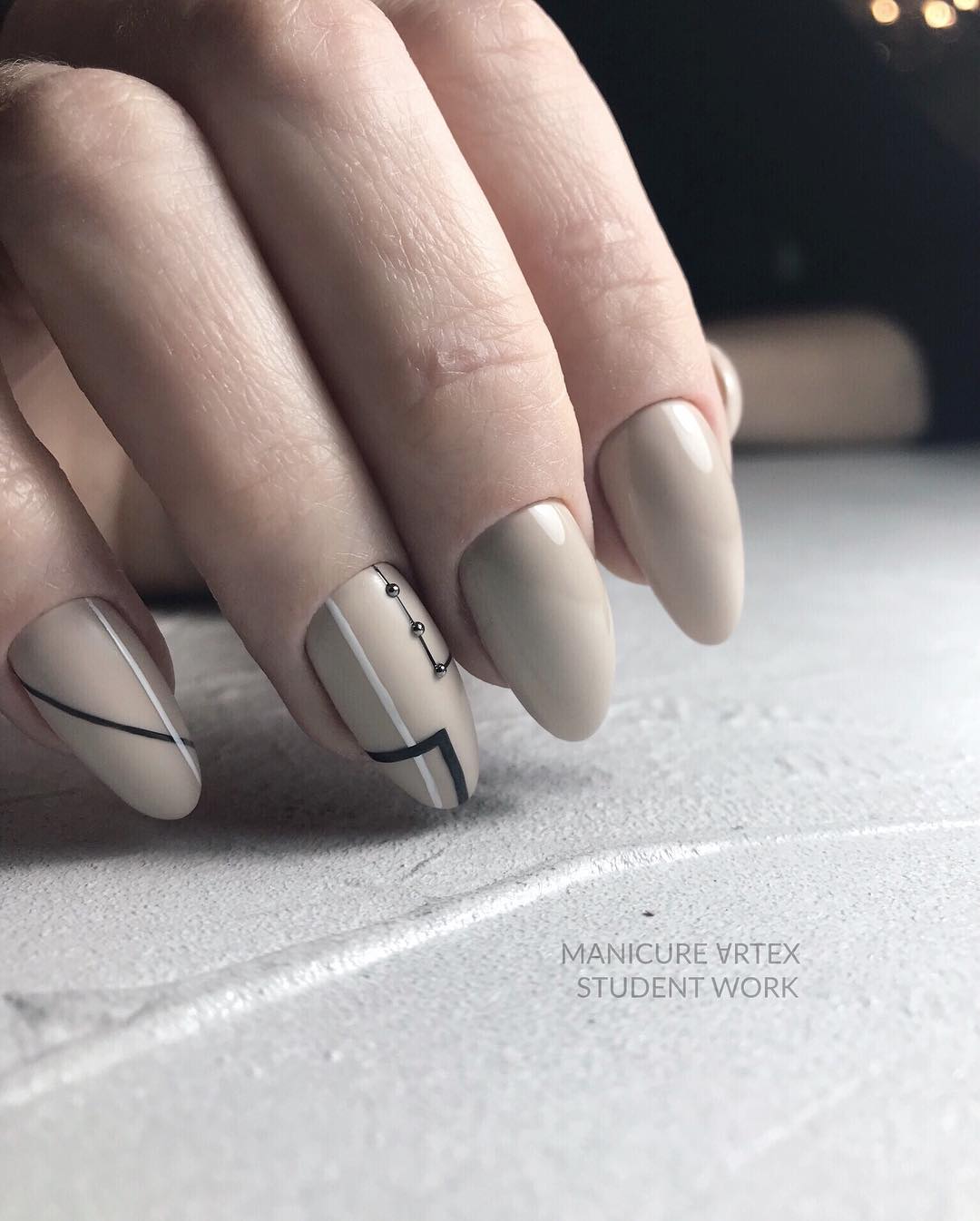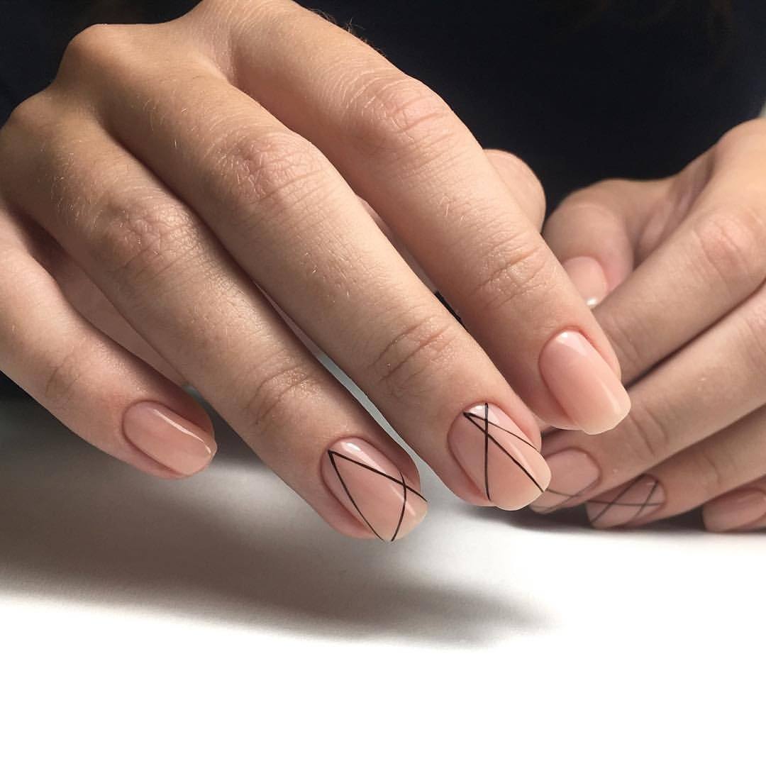 Маникюр минимализм на пике популярности. Девушкам очень нравятся незамысловатые, но при этом эффектные узоры на ноготках. Маникюр чаще всего выполняется в ахроматических оттенках: черный-белый, прозрачный-черный, бежевый-черный и т.д. На светлом фоне черные узоры выглядят гораздо заметнее и эффектнее.