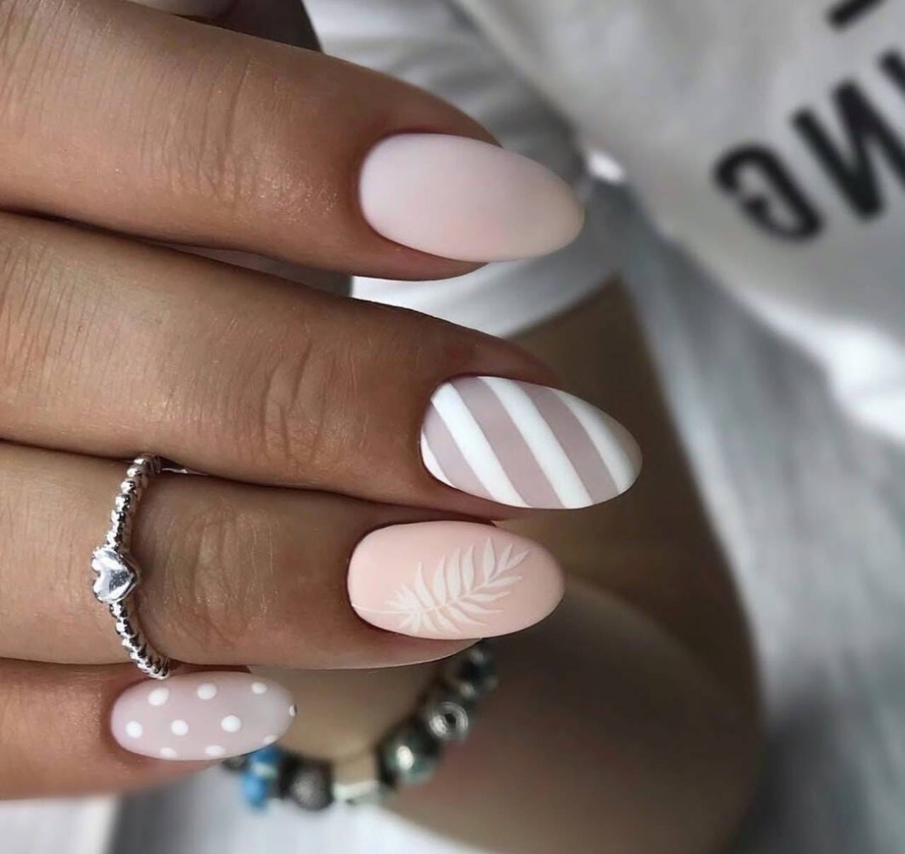 Что касается тематики узоров, то в лидерах по-прежнему флористика. Ее легче выполнить ручной росписью или стемпингом, цветы выглядят нейтрально, что очень необходимо для повседневного маникюра. Кроме флористики на ноготках девушек красуются полосы, круги, ловцы снов, точки, мэхенди и т.д.