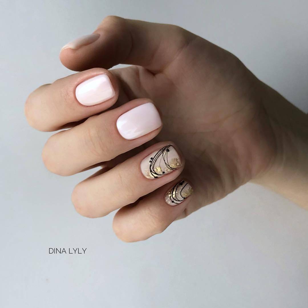 Большинство новинок нейл-дизайна изначально апробируются именно на коротких ногтях. На небольшой длине можно поэкспериментировать с декором и оттенками, убрать детали, которые на взгляд мастера будут лишними. Повседневный маникюр на коротких ногтях чаще всего создается в пастельных оттенках. Это универсальный вариант, но согласитесь, немного скучный. Не стоит покрывать короткие ноготки однотонным, едва заметным гель-лаком и оставлять их без декора. Выделите прикорневую зону стразами, фольгой, используйте разные текстуры гель-лака: матовый, глянцевый, магнитный, кракелюр и т.д.