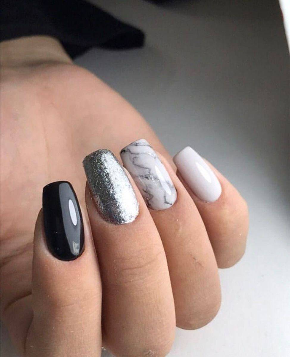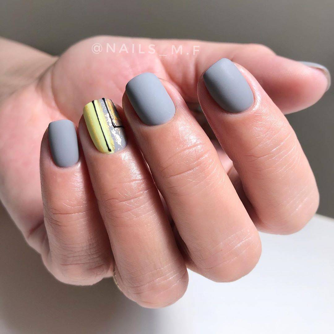 - серый – классический вариант для мраморного маникюра, который отлично впишется в ваш офисный стиль