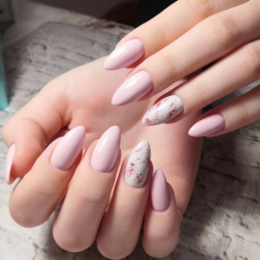 Ноготки в форме миндаля подойдут обладательницам таких ногтевых пластин: