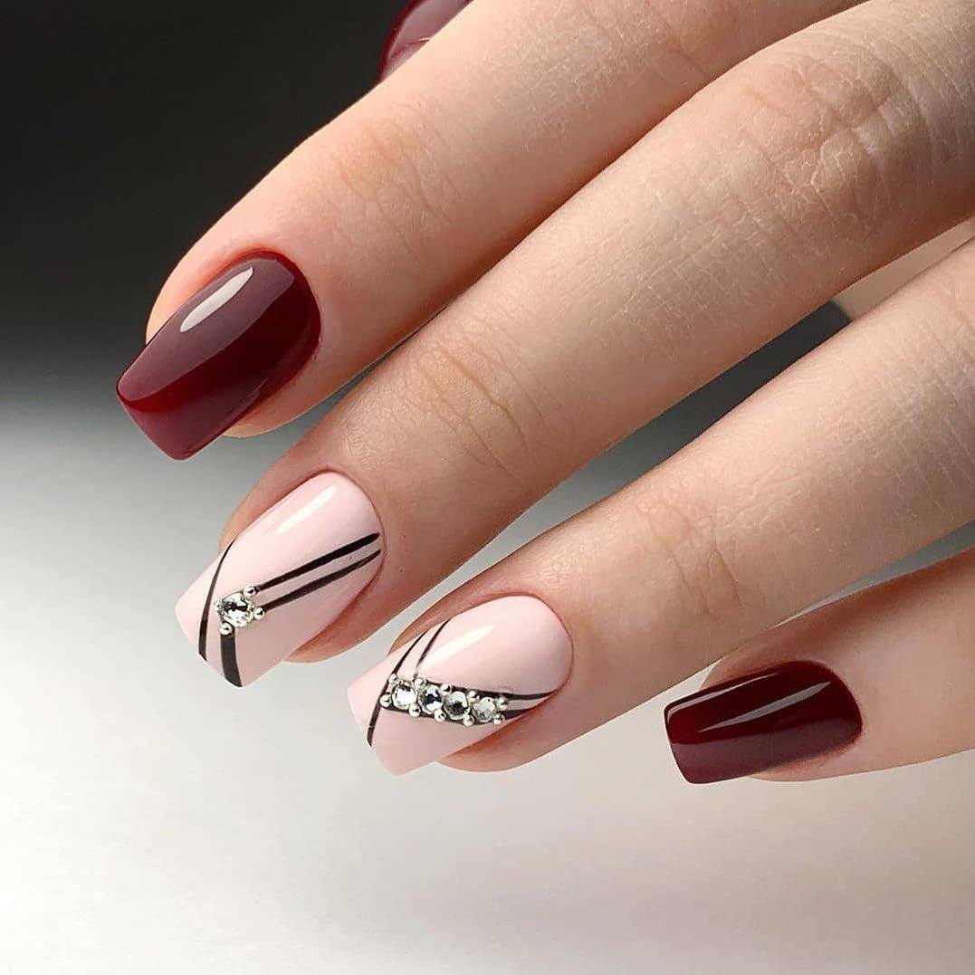 Элегантно выглядит на коротких и на длинных ноготках классический красный и бордовый дизайн.