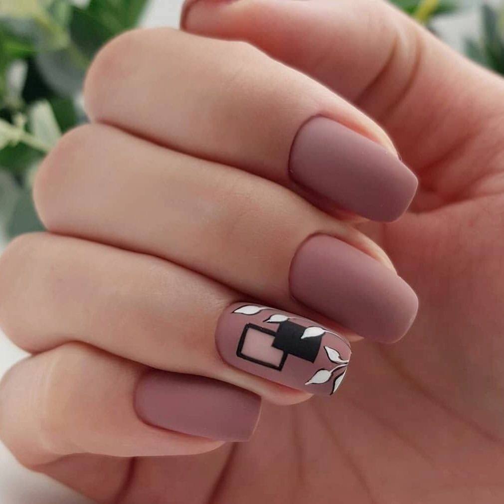 Офисный маникюр и маникюр минимализм – понятия синонимы. Оба этих направления отличаются сдержанностью оттенков и декора. Маникюр минимализм отлично смотрится в матовой текстуре с акцентными узорами в виде веточек и листочков. Узор выполняется с помощью стемпинга, так рисунок получается детальнее и заметнее.