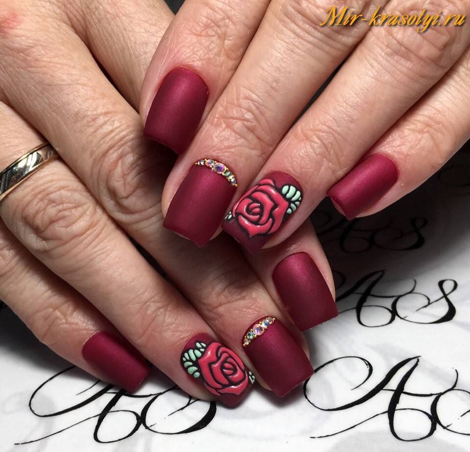 Тем, кому не хочется раскрашивать ногти в разные оттенки, можно просто выделить необходимые пальцы с помощью рисунков или характерных элементов. Например, на свадьбу невесты часто украшают безымянный палец на правой руке, чтобы всю жизнь провести в счастливом браке.