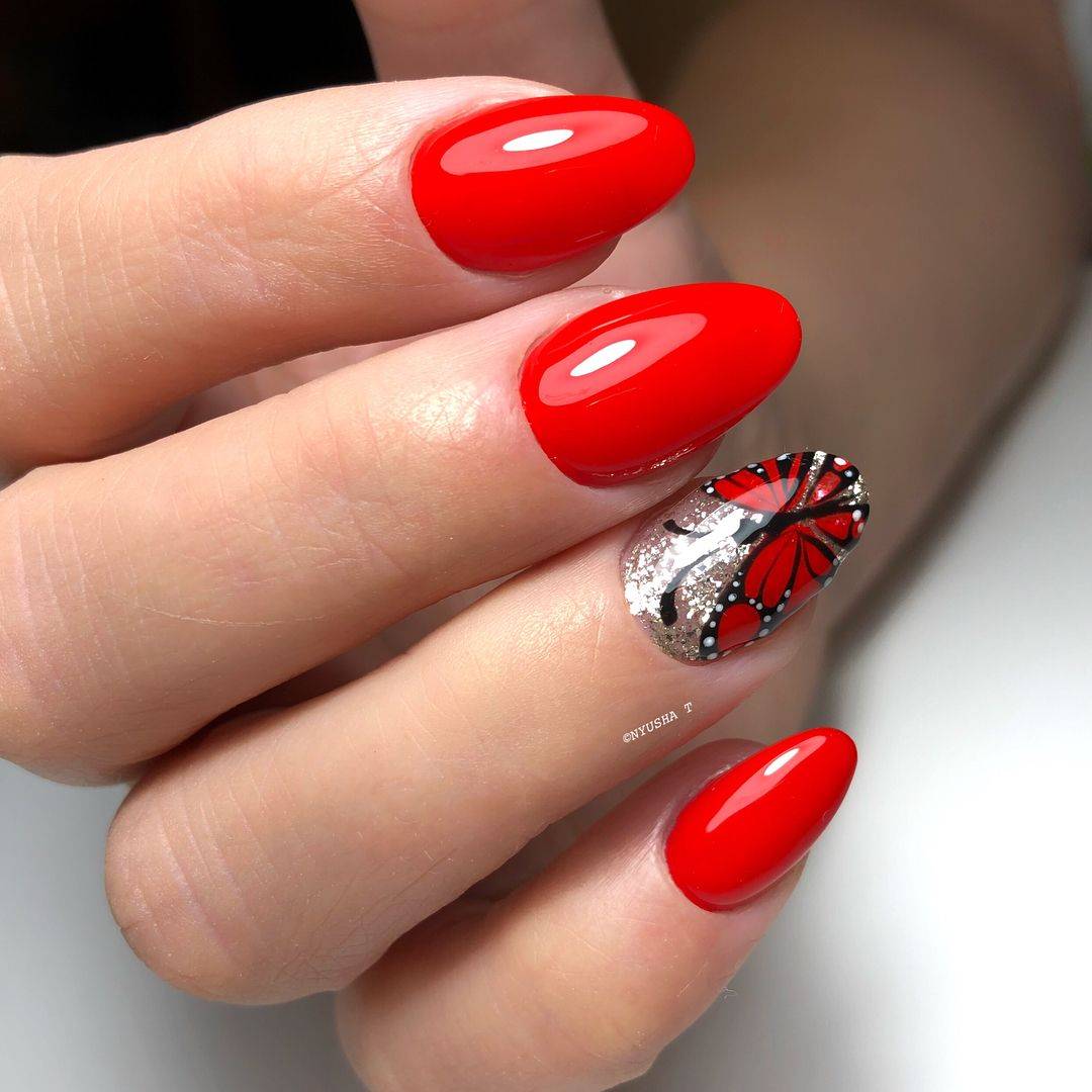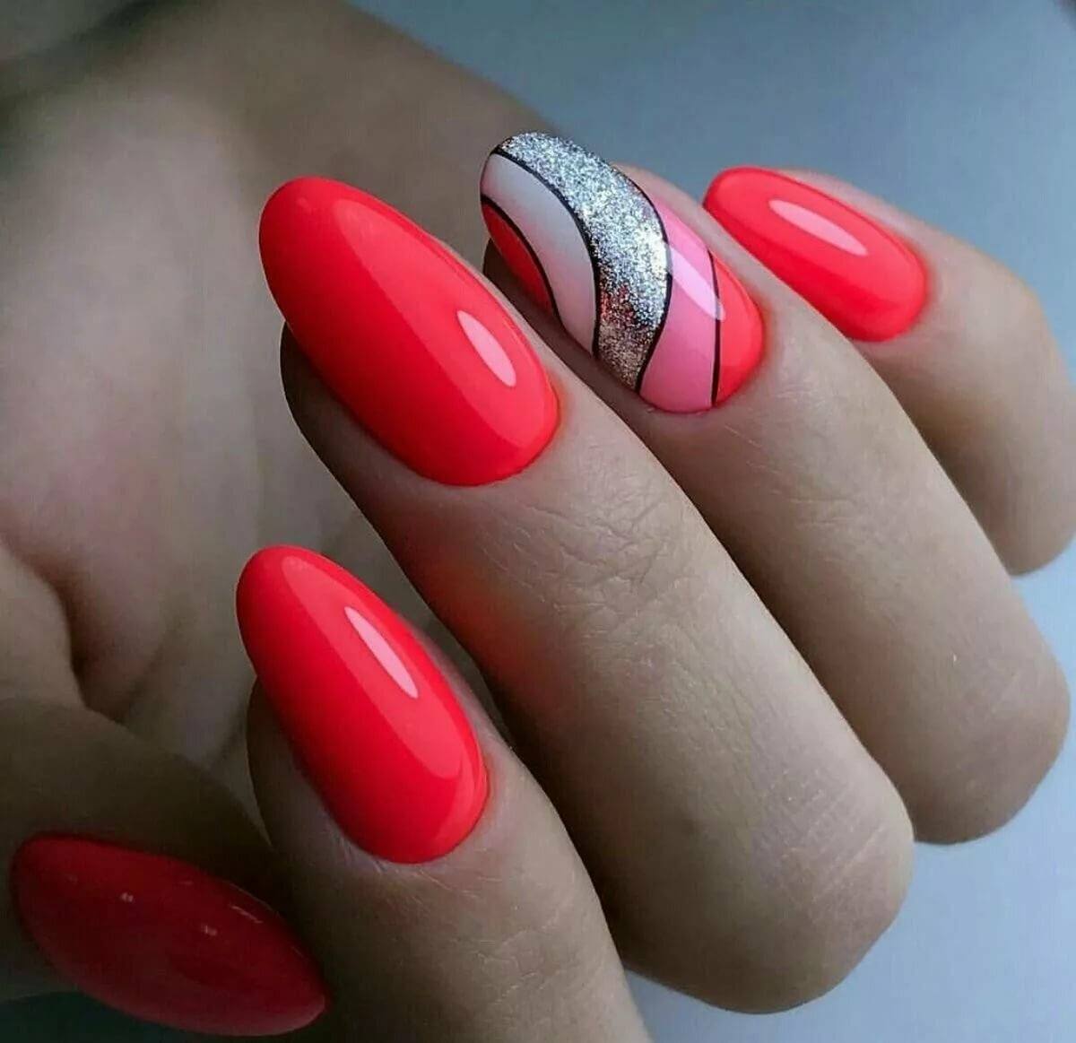 Идеальная форма яркого маникюра у мира моды считается квадратная или овальная. Однако на другие формы его можно также наносить.