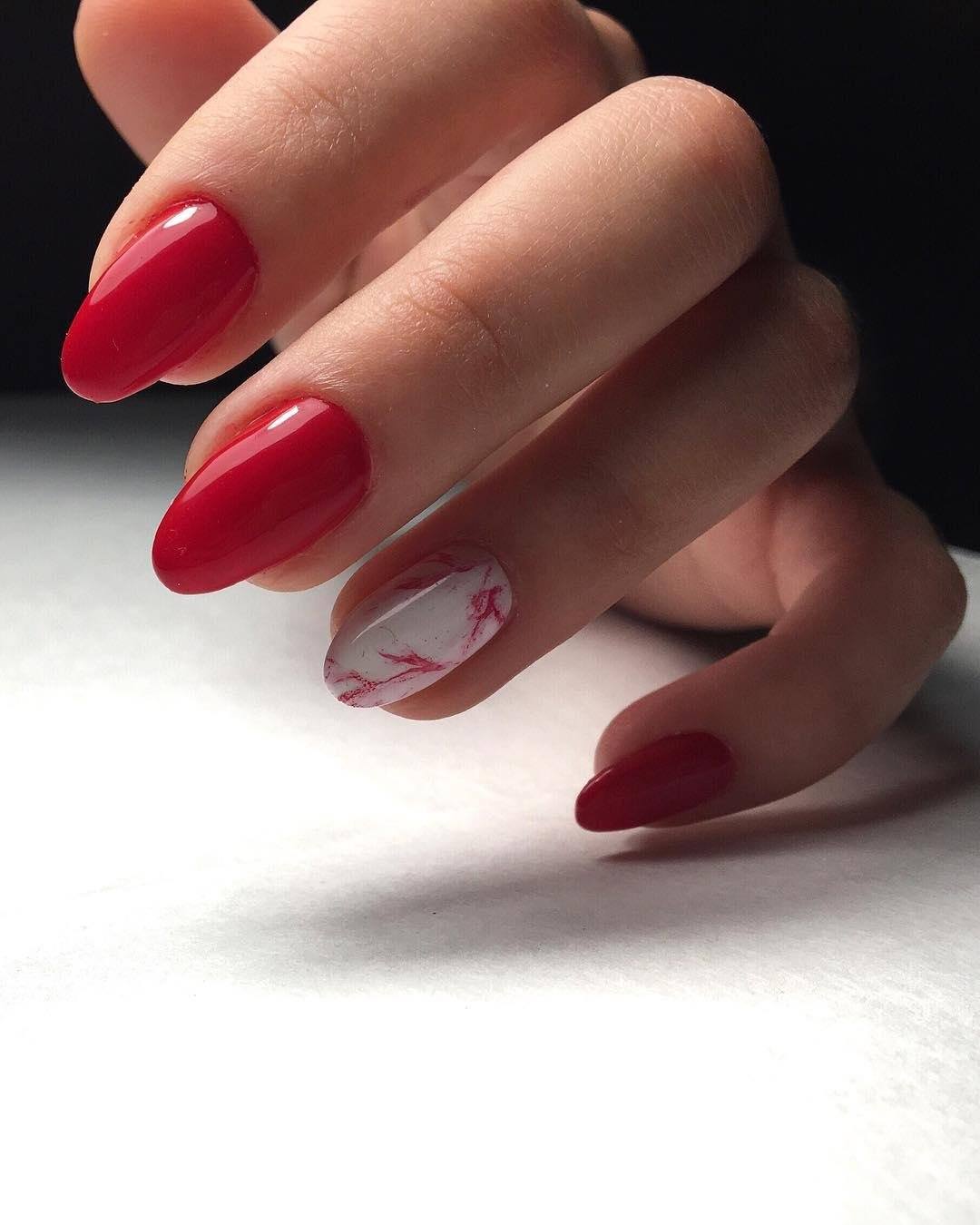 #4 Красный маникюр с мраморным дизайном