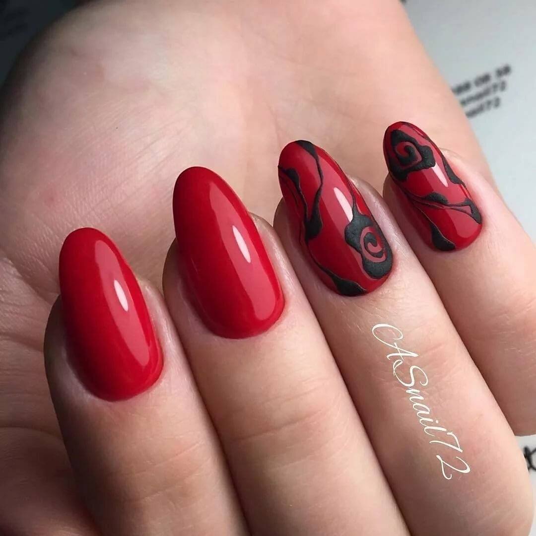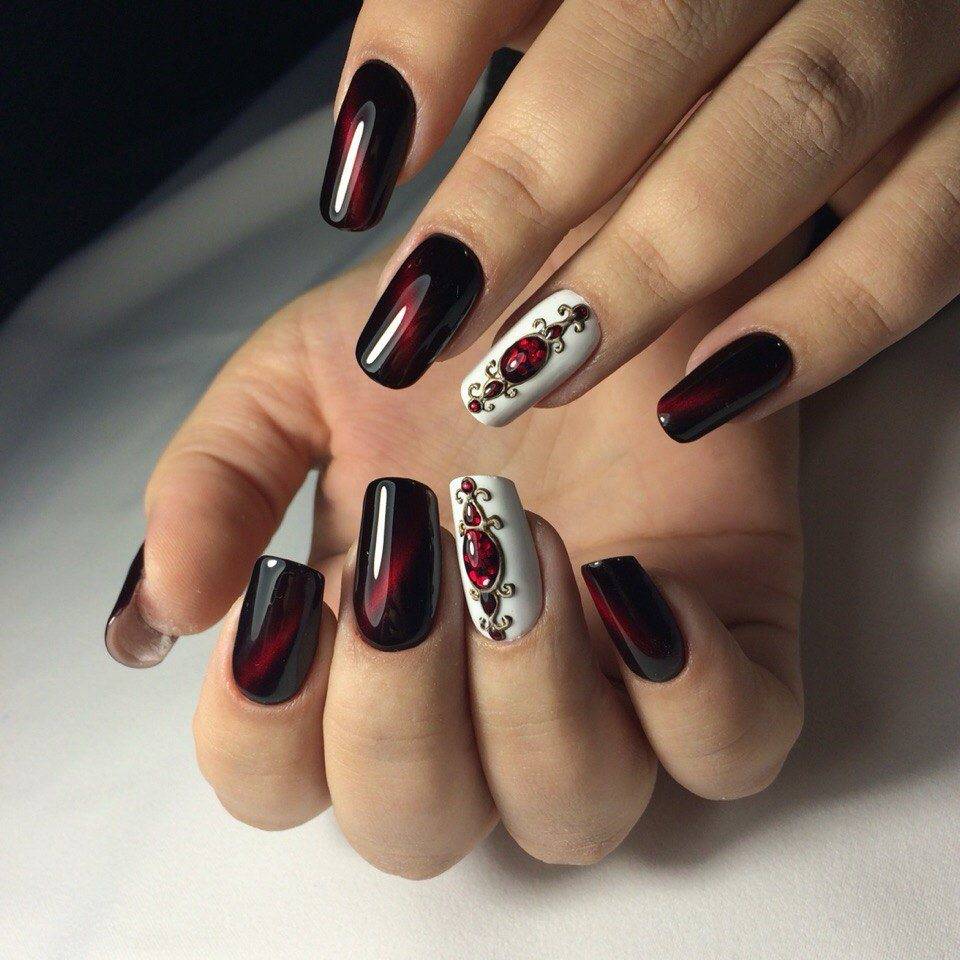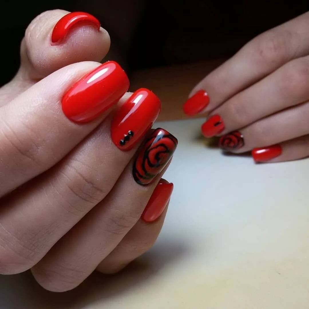 Современные нейл-арты редко обходятся без дизайна, черно-красный маникюр не исключение. Здесь допустимы любые украшения, которые вы использовали с другими оттенками.