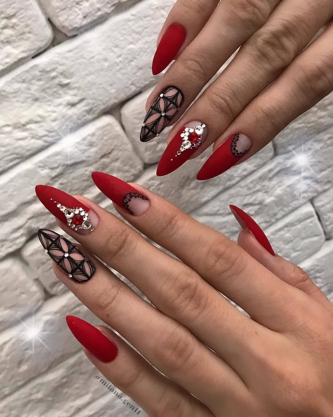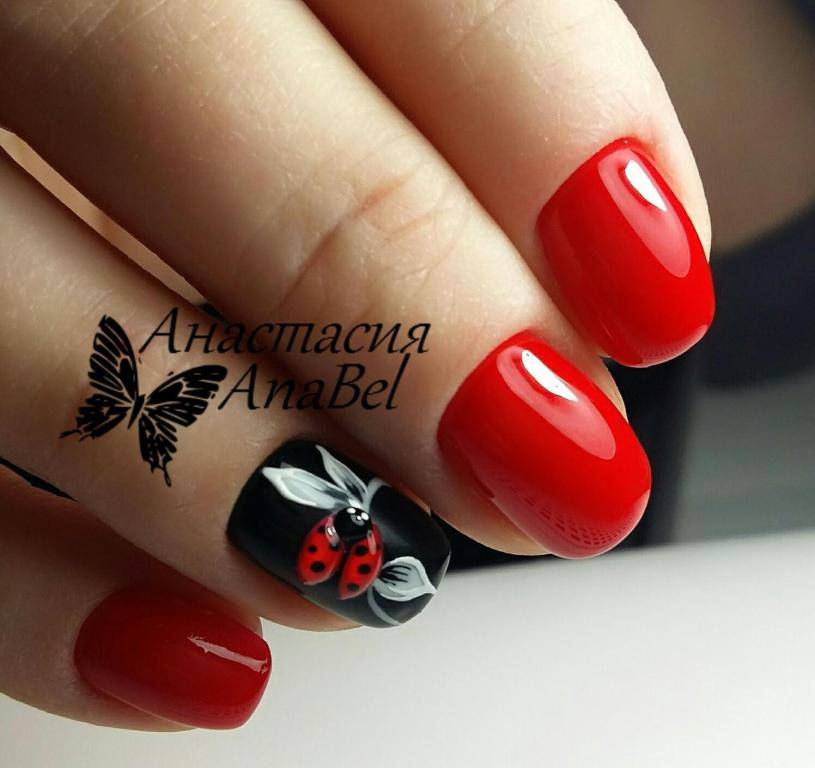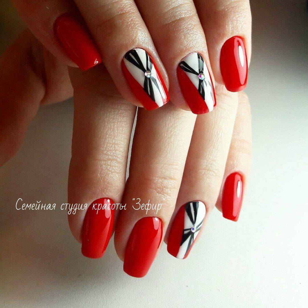 Современные нейл-арты редко обходятся без дизайна, черно-красный маникюр не исключение. Здесь допустимы любые украшения, которые вы использовали с другими оттенками.