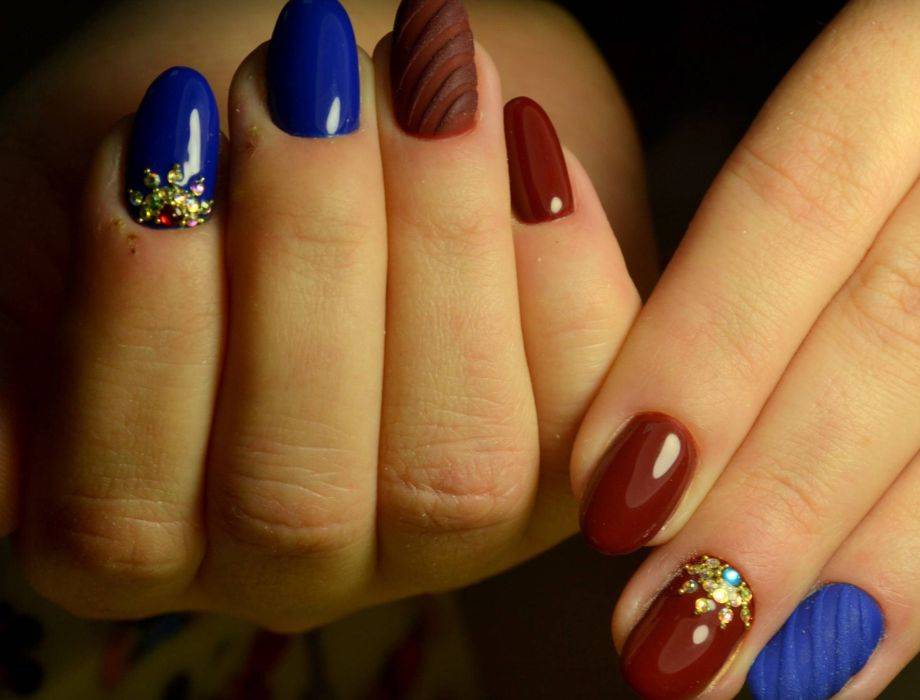 В любом дизайне маникрюра – красный цвет отлично комбинируется с синим