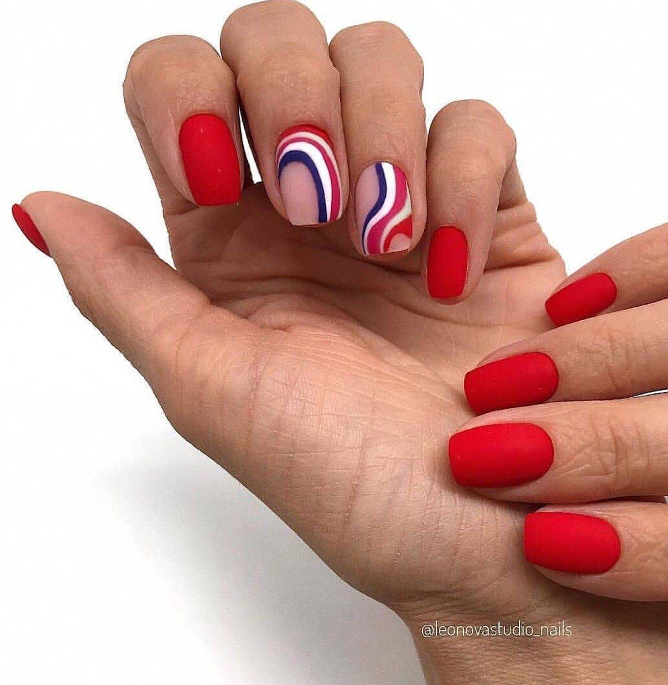 Поклонницы яркого маникюра могут комбинировать эффектный красный с другими цветами.
