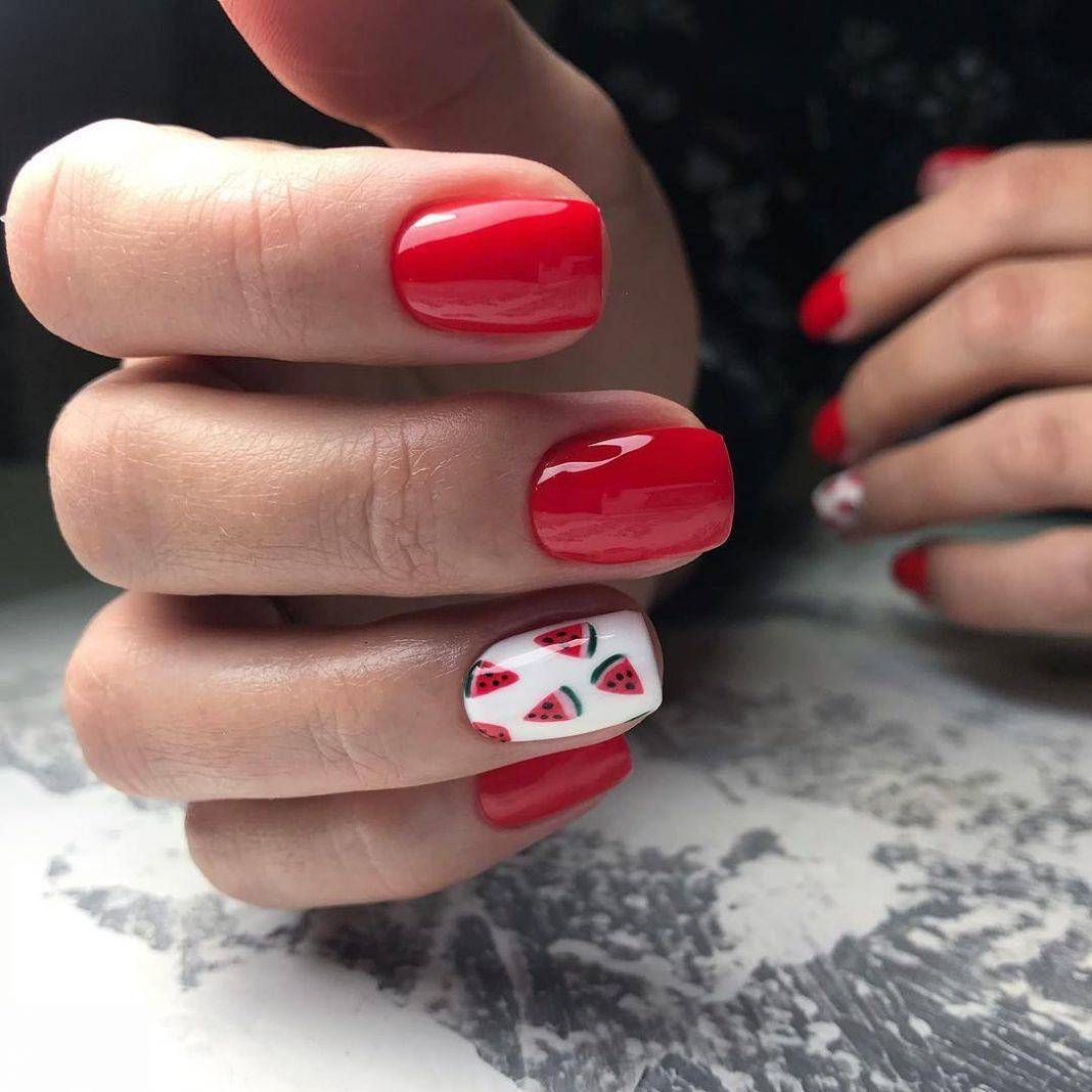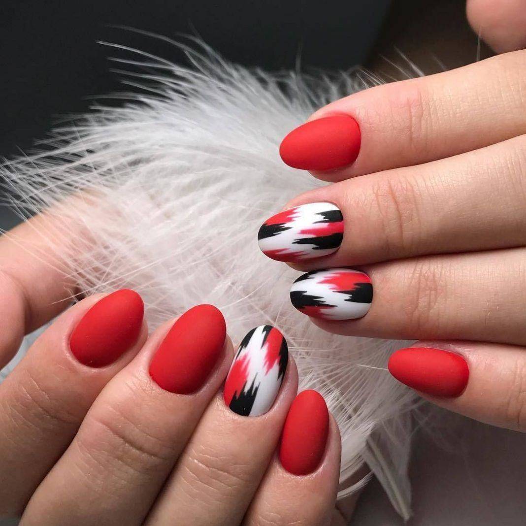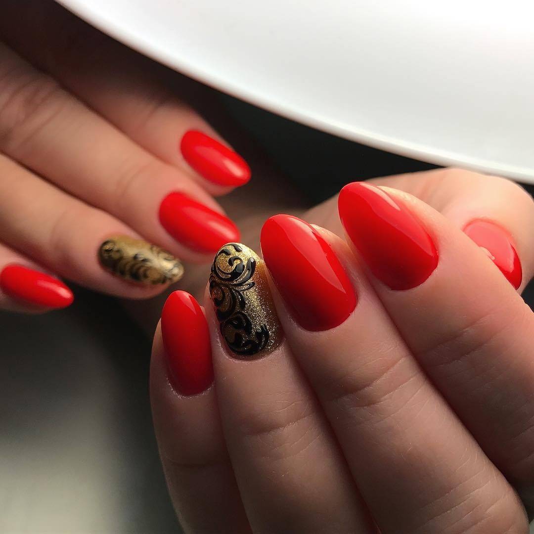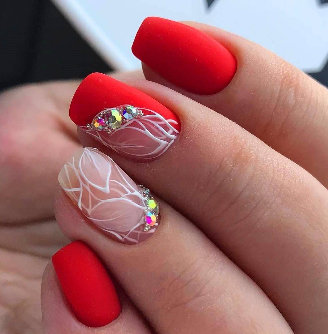 Интересные идеи красного маникюра с дизайном