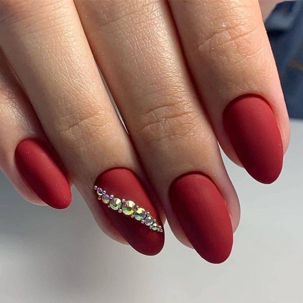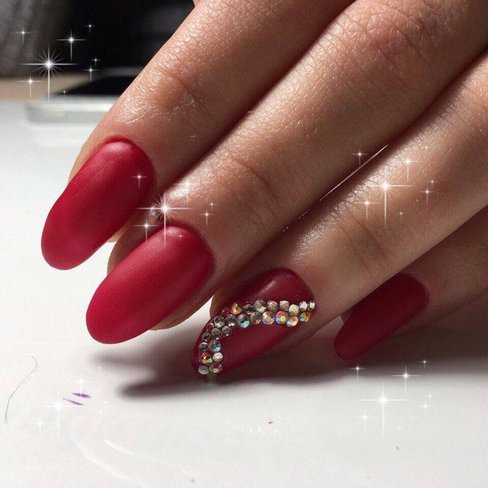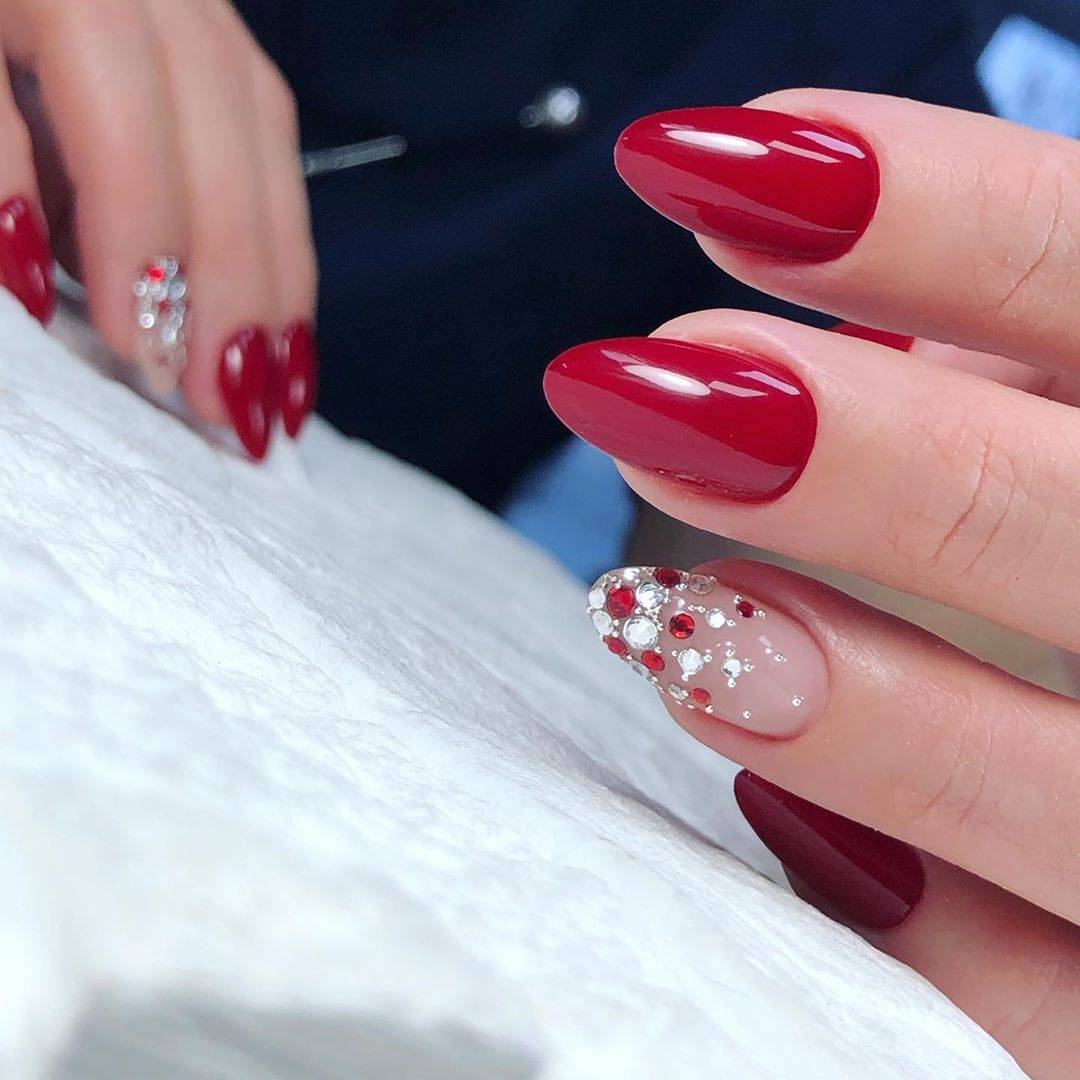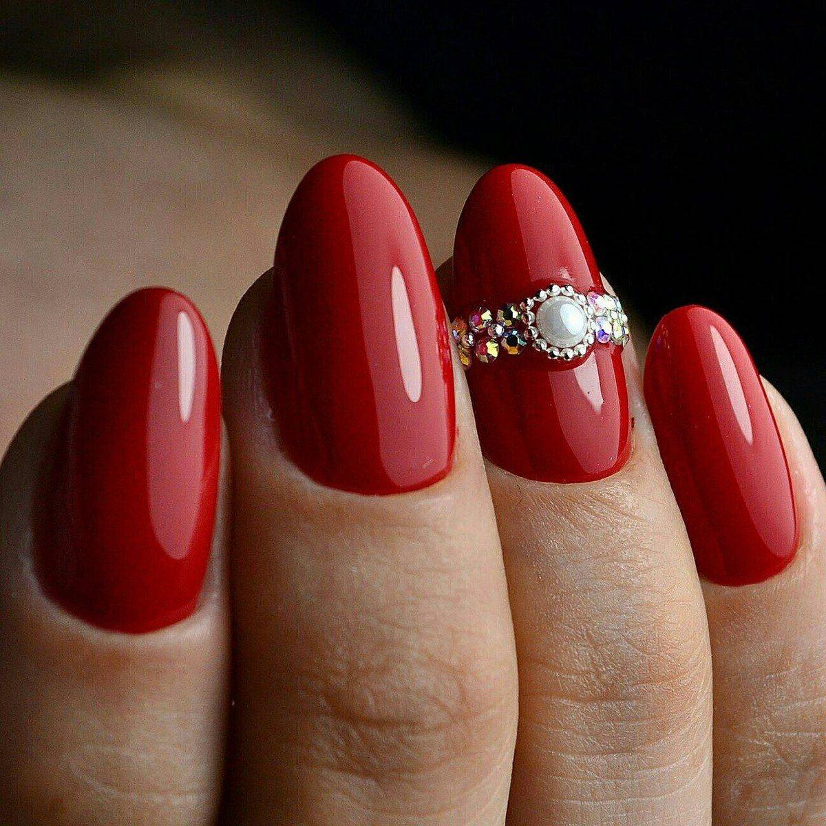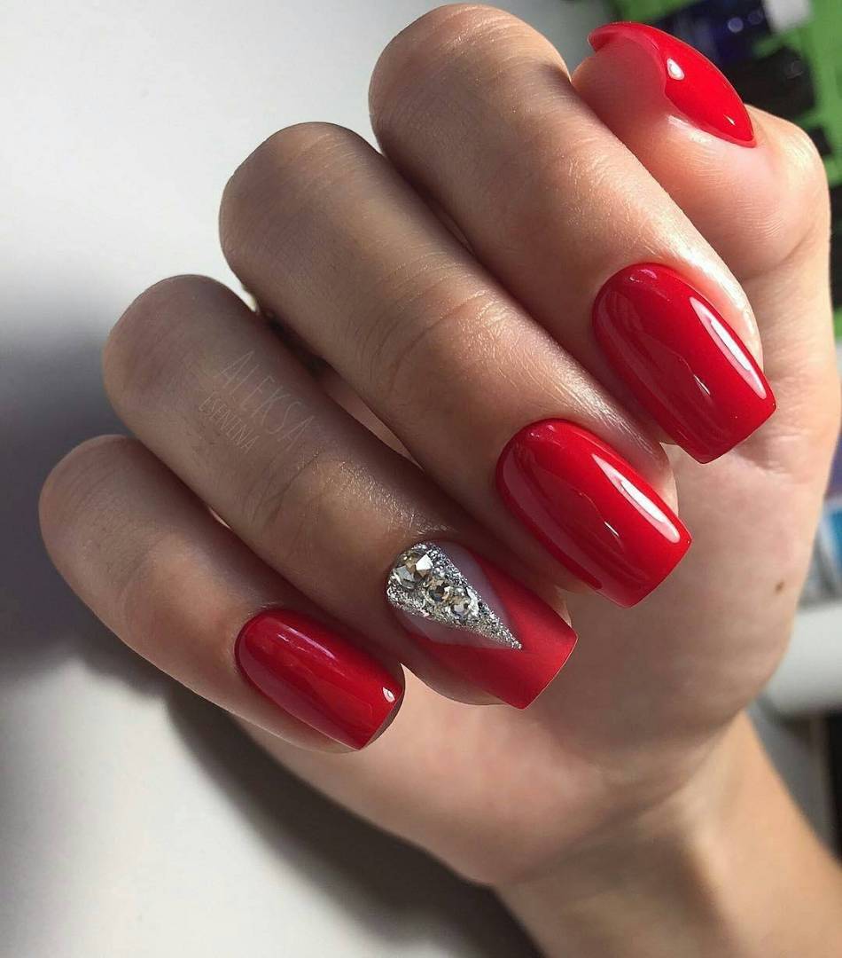 Шикарный красный маникюр со стразами