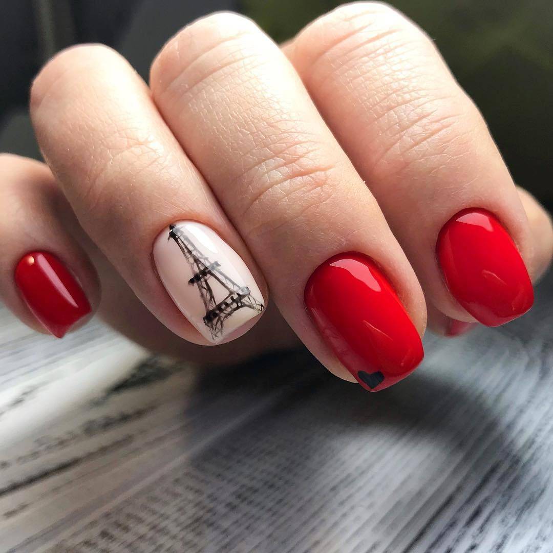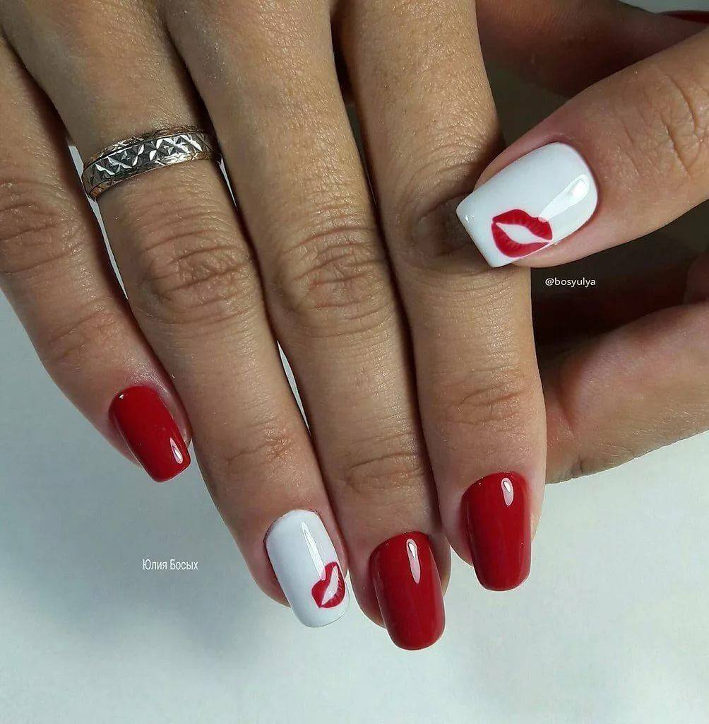 Красный маникюр с белым