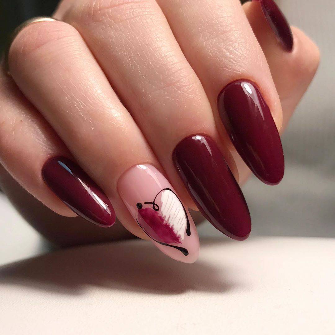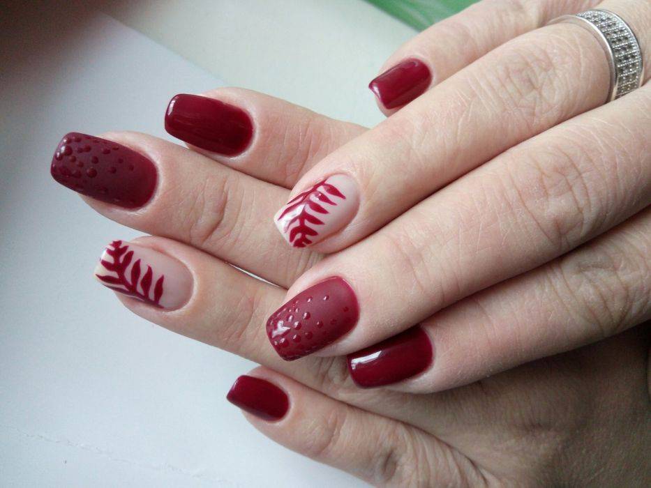 Маникюр в бордовых тонах с дизайном