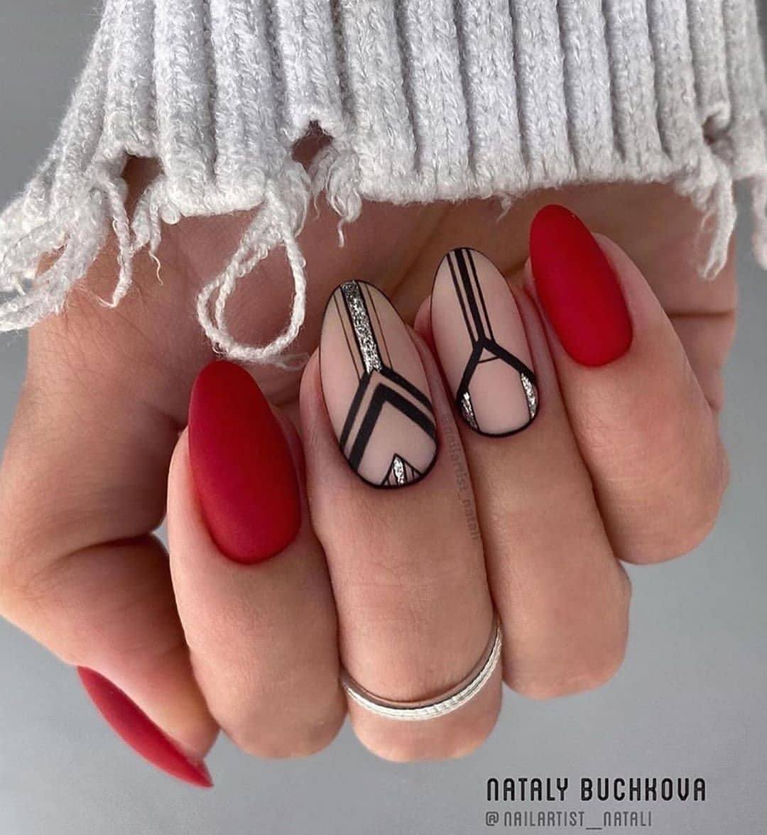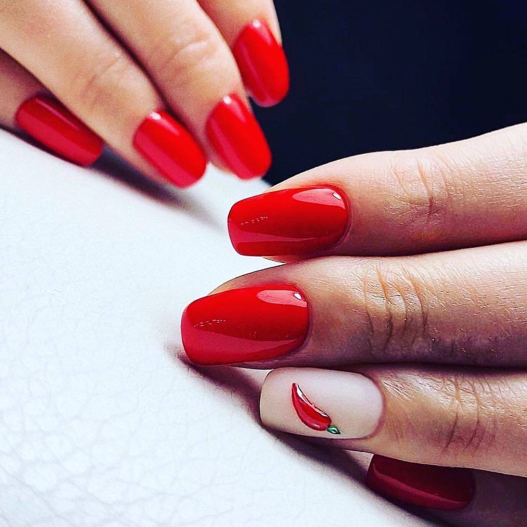 Модные сочетания красного маникюра