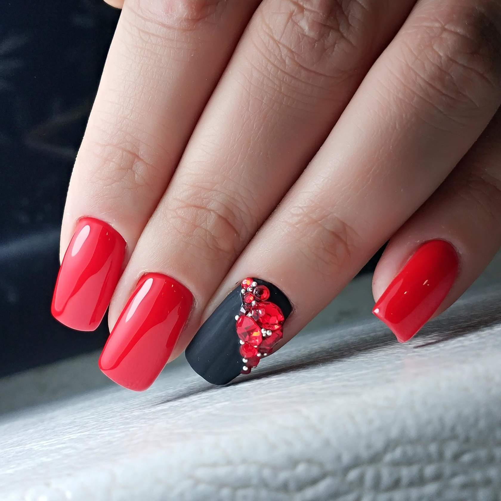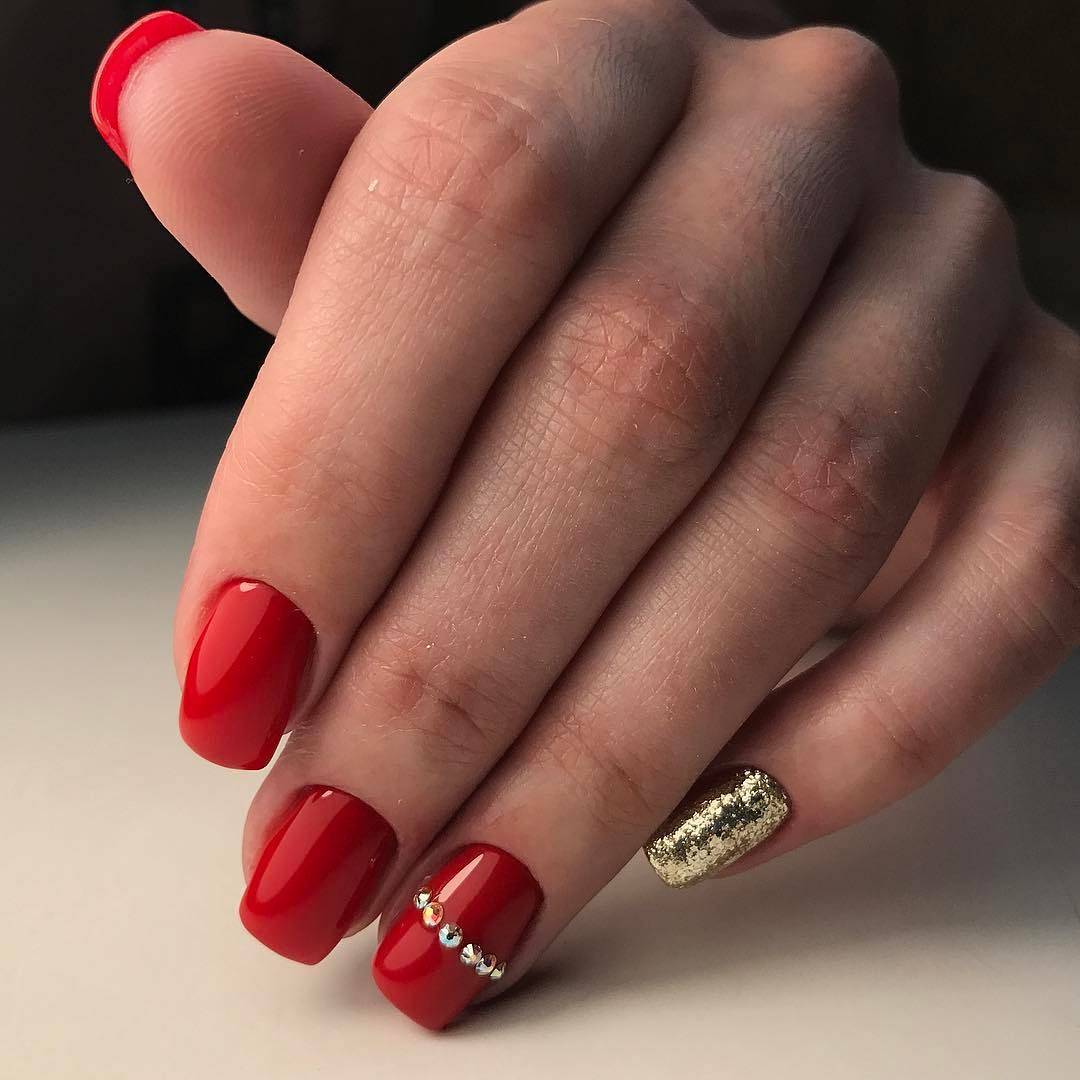 Красный маникюр со стразами