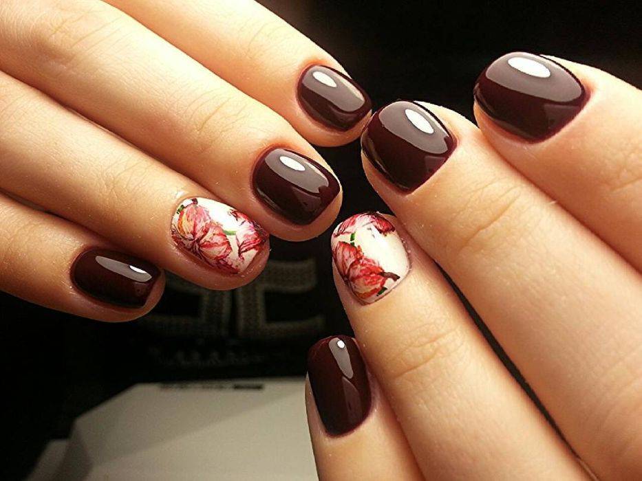 Маникюр с бордовыми цветами