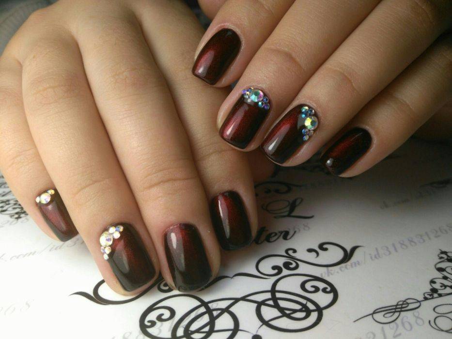 Фото дизайна бордовым гель-лаком на коротких ногтях