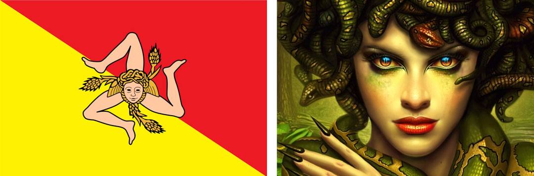 В те ранние годы в Реджо-ди-Калабрии, возможно, именно в это время Версаче впервые стало известно о голове Медузы: она изображена на флаге соседней Сицилии в силуэте, который напоминает собственное изображение логотипа Версаче — мифического персонажа. Но именно глубокая символика Медузы заставила Версаче принять фигуру в качестве главного символа логотипа Версаче.