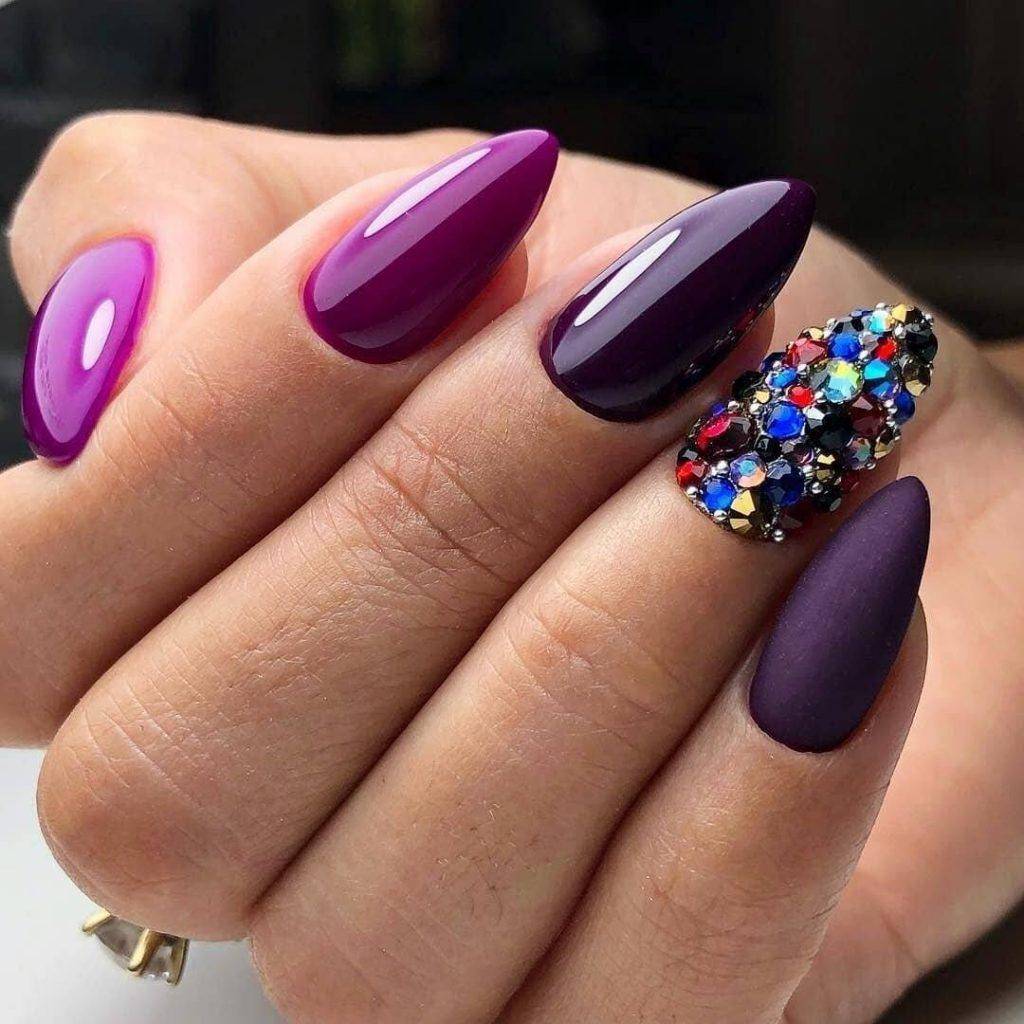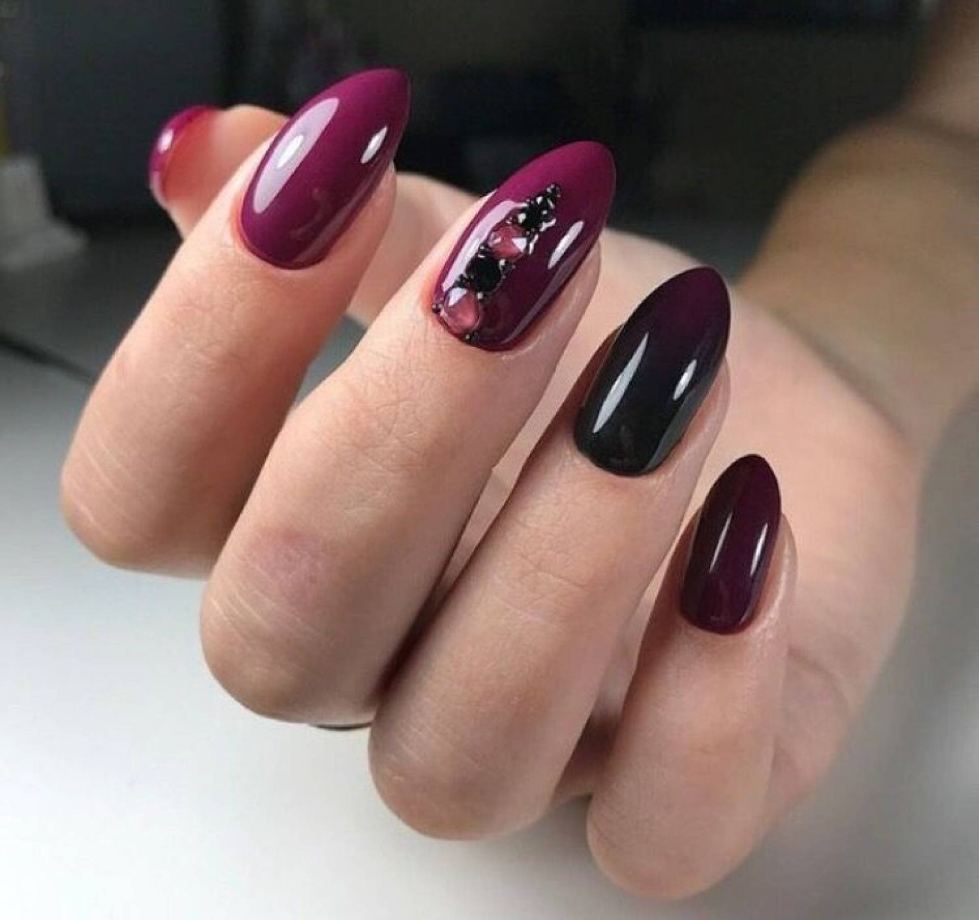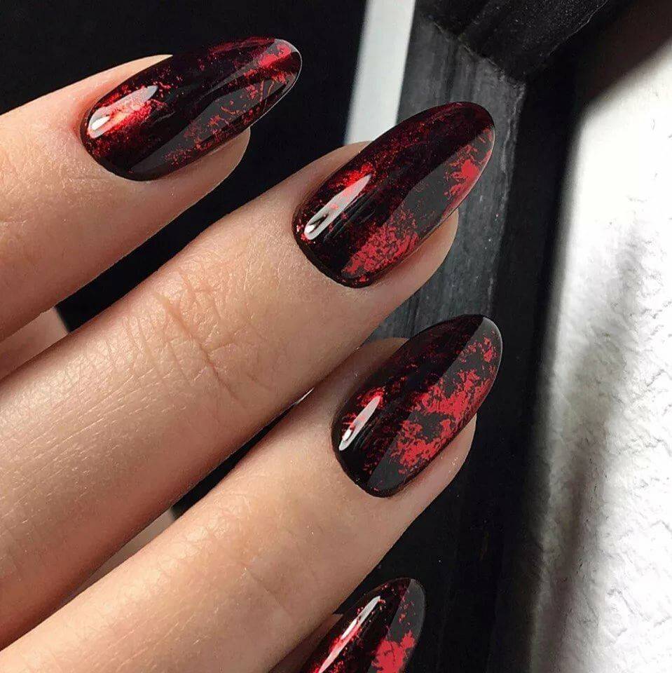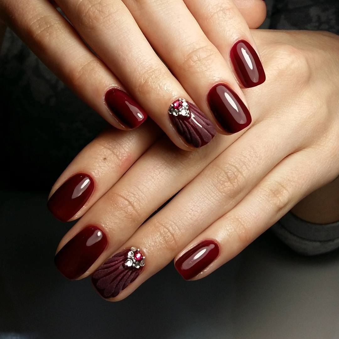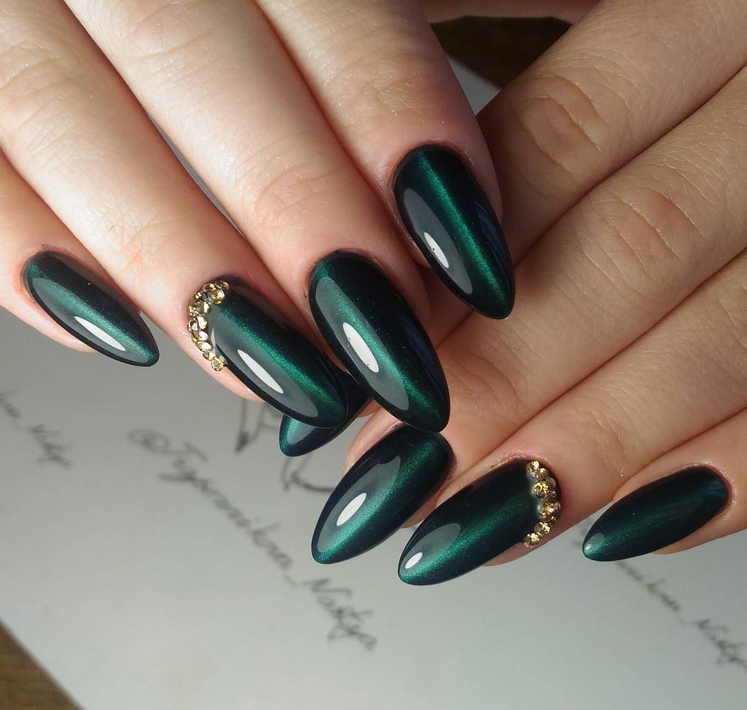 В вечернем образе великолепно смотрится бордовый, изумрудный, черный цвета. Они шикарно переливаются, выглядят объемно и очень красиво. Магнитные нейл-арты чаще всего не нуждаются в дополнительном декоре.