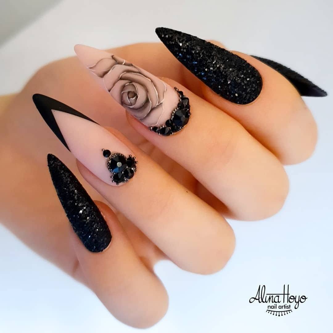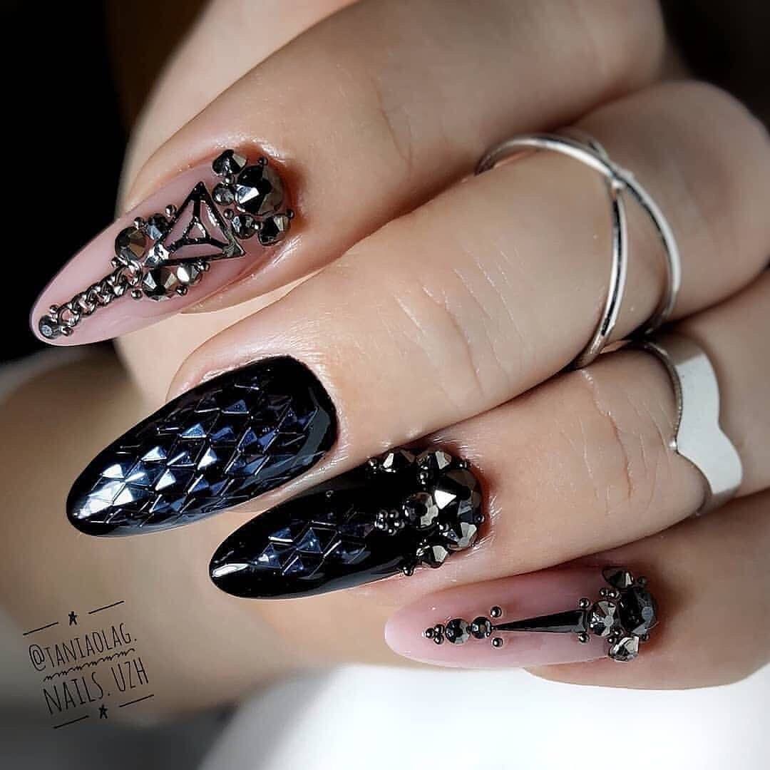 #1 Черный вечерний маникюр 2020