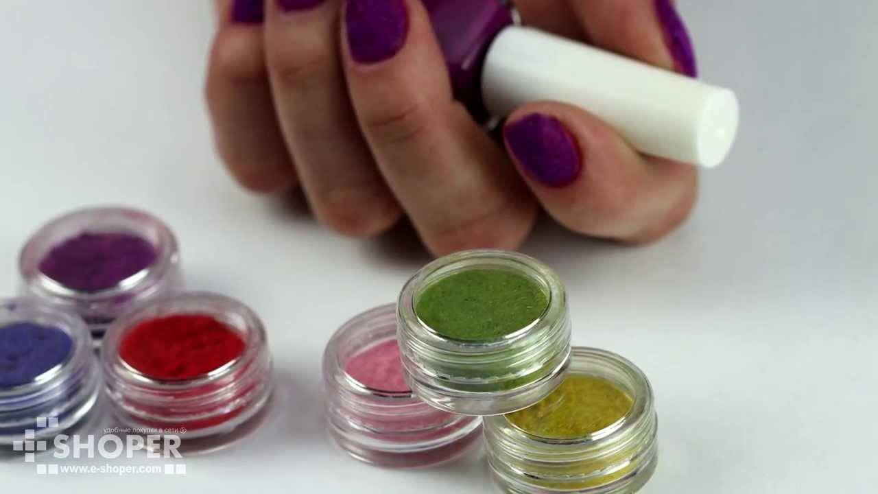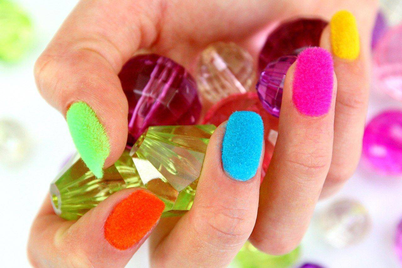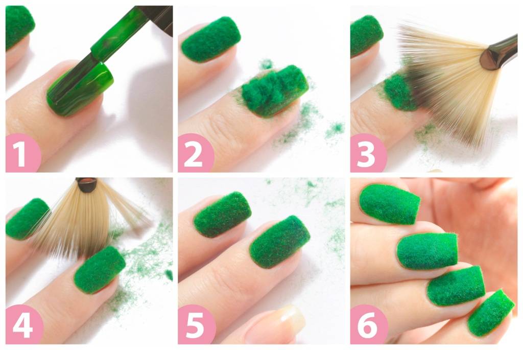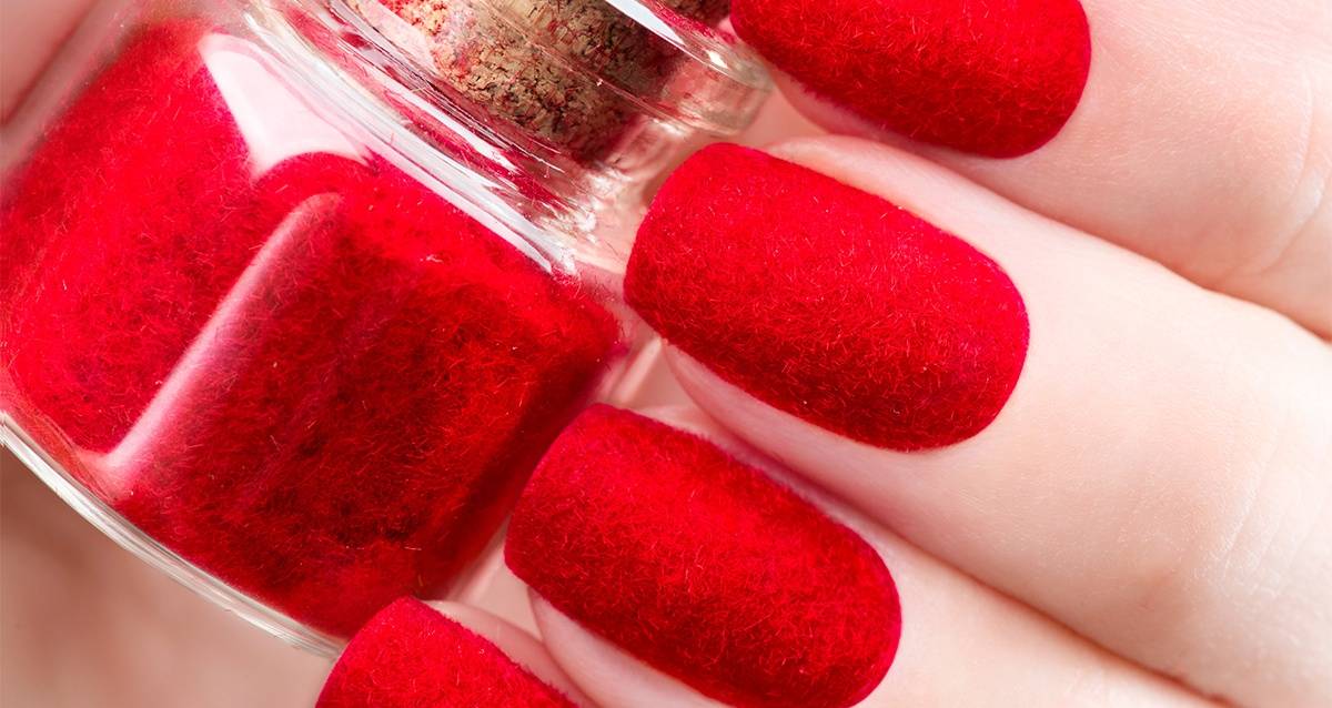 Флок дизайн ногтей — покрытие ногтей бархатным песком