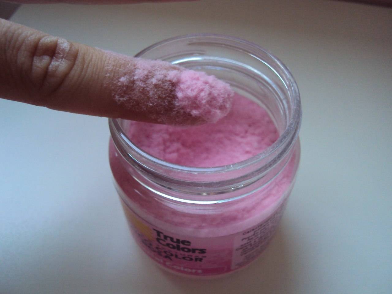 - После этого насыпают песок в небольшую емкость и окунают ноготь. Его как бы вдавливают в пудру