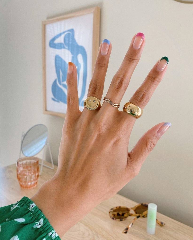 - разновидности французского маникюра (френча) и вариации омбре популярен весной 2021 года;
