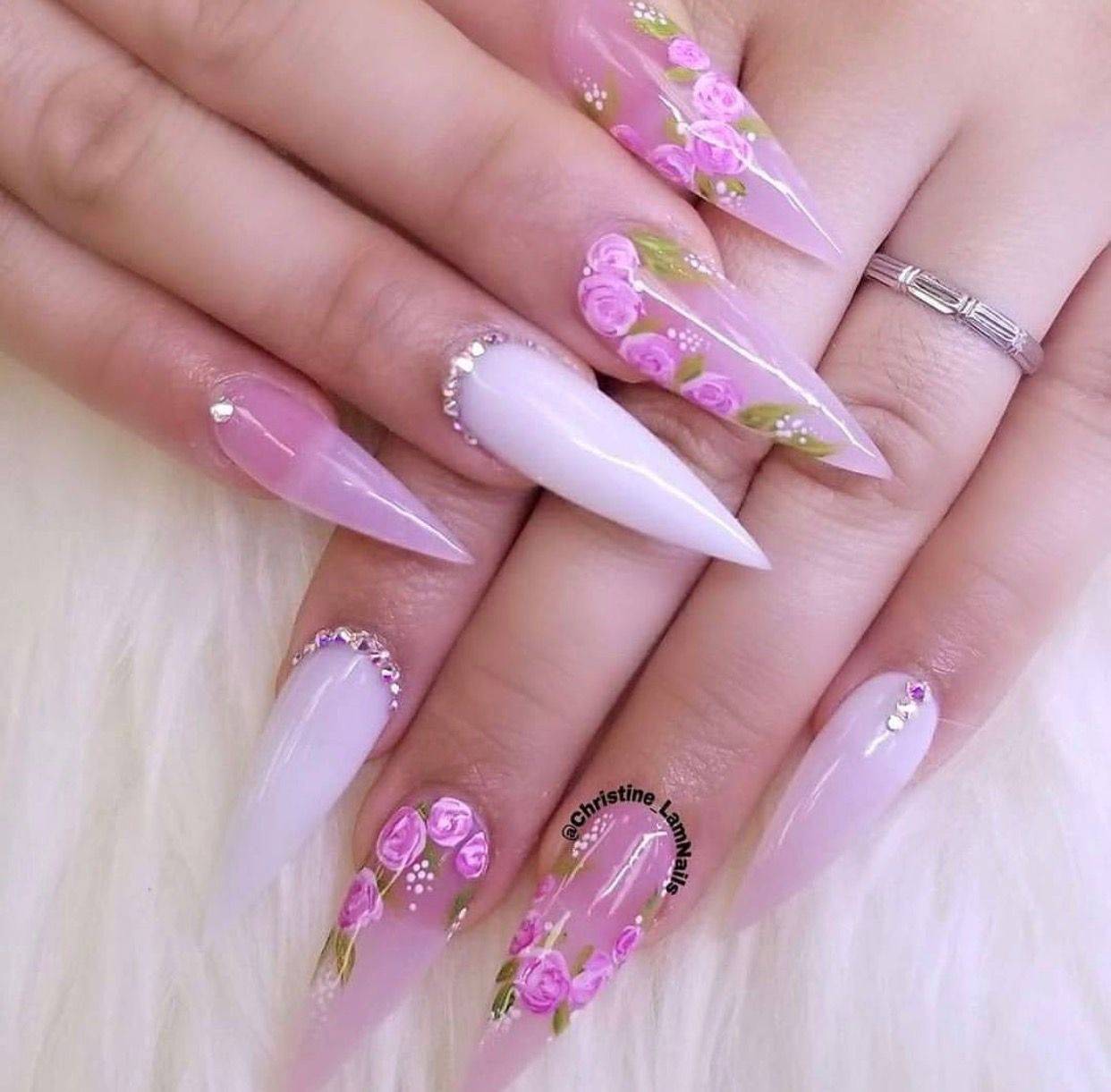 Если наносить такой узор на короткие ногти, то он будет смотреться достаточно повседневно. Поэтому лучше предварительно нарастить недостающую длину: подойдет акрил с заостренным концом.