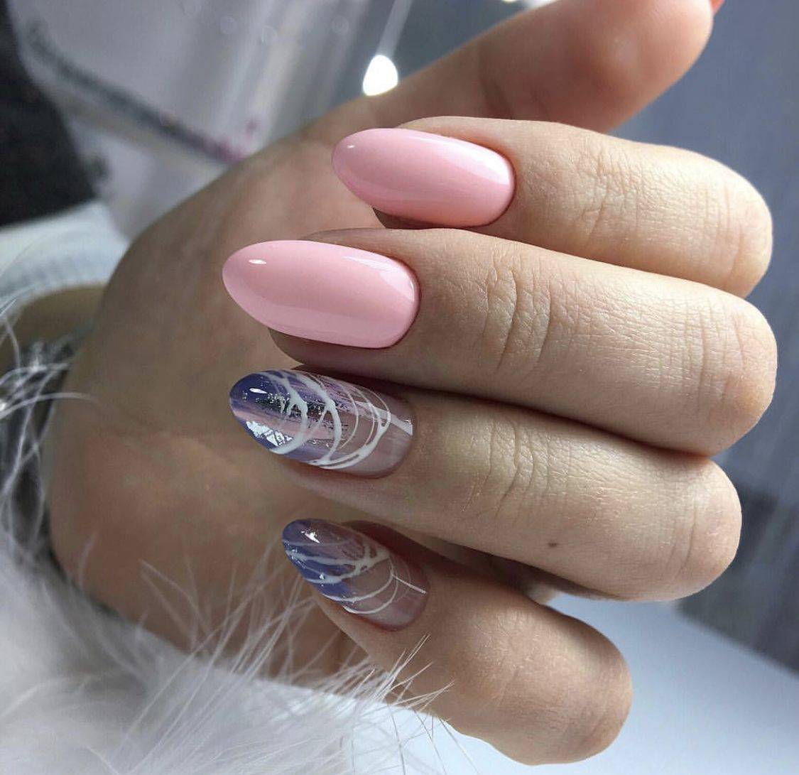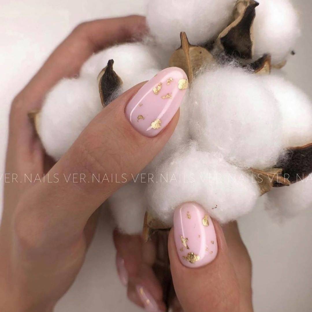 Нежно-розовый маникюр на очень короткие ногти с кварцевыми прожилками — это дизайн, который может заменить однотонное покрытие в телесной палитре, если в какой-то момент оно вам наскучит.