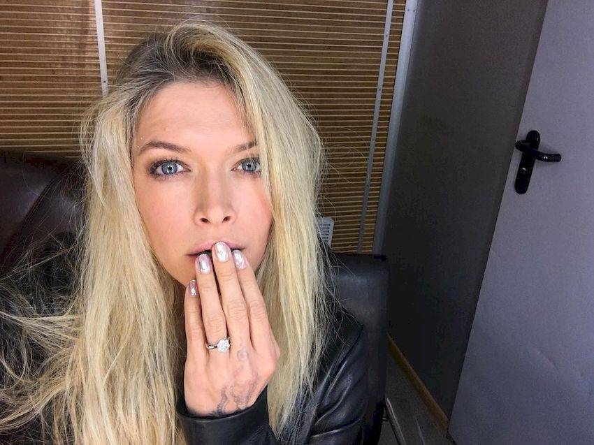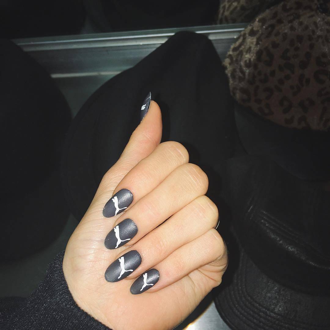 Для знаменитости не принципиально, чтобы ногти всегда были натуральными. Она может выбрать любую форму, ориентируясь на тренды с модной индустрии. Недавно модель и участница реалити-шоу была замечена с формой пуанты относительно небольшой длины. Цвет пластины был очень нежным, с матовым топом.