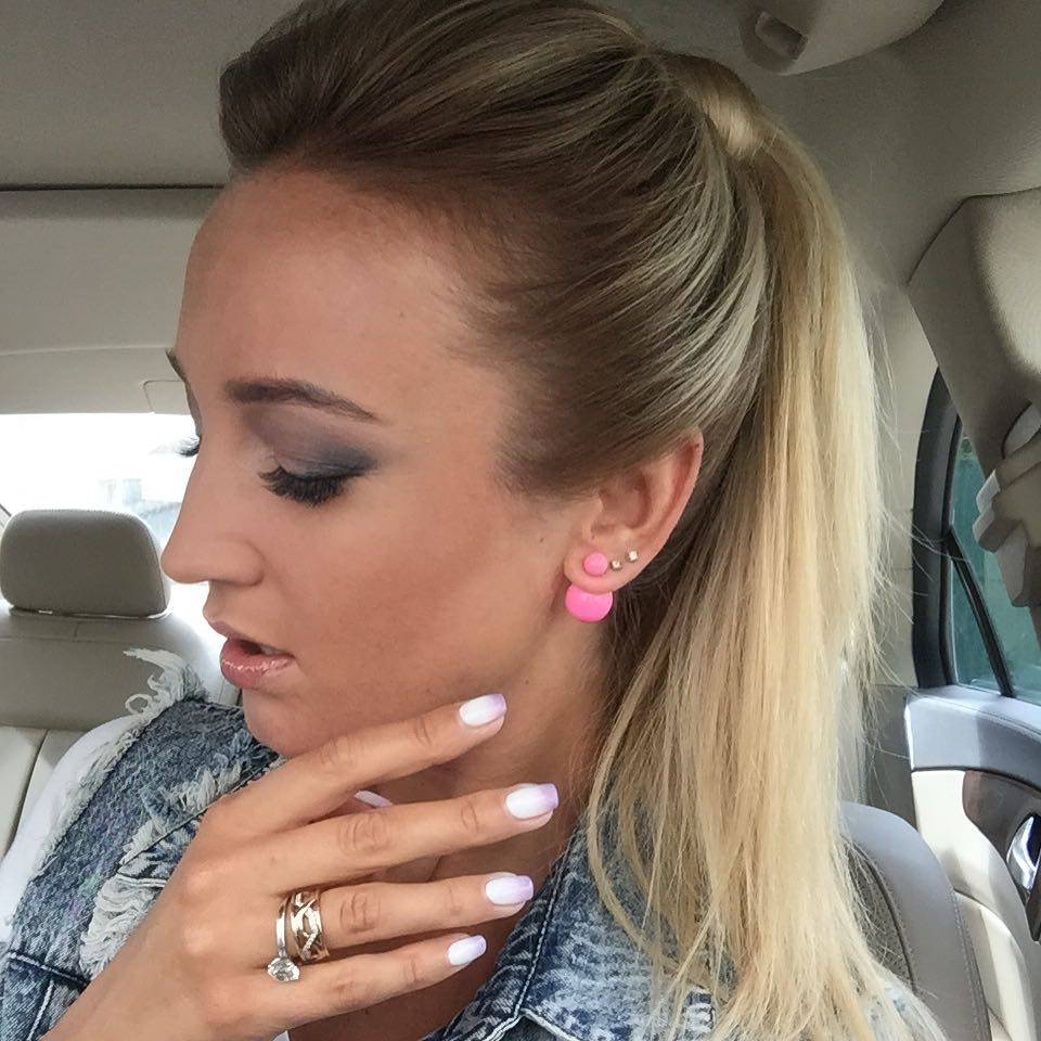 Ольга Бузова, с недавних пор ставшая вокальной исполнительницей, уже довольно популярная звезда в молодежных кругах. Постоянной звезде телеэкранов приходится быть всегда во всеоружии, хотя она очень часто выбирает для себя броский дизайн ногтей с использованием неоновых оттенков.