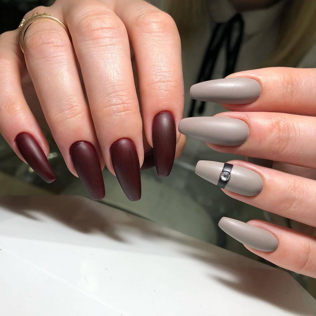 Для осеннего маникюра прекрасно подойдут модные в этом году матовые покрытия и, конечно же, бархат (флокирование). Смотрятся такие покрытия стильно даже в однотонном исполнении.