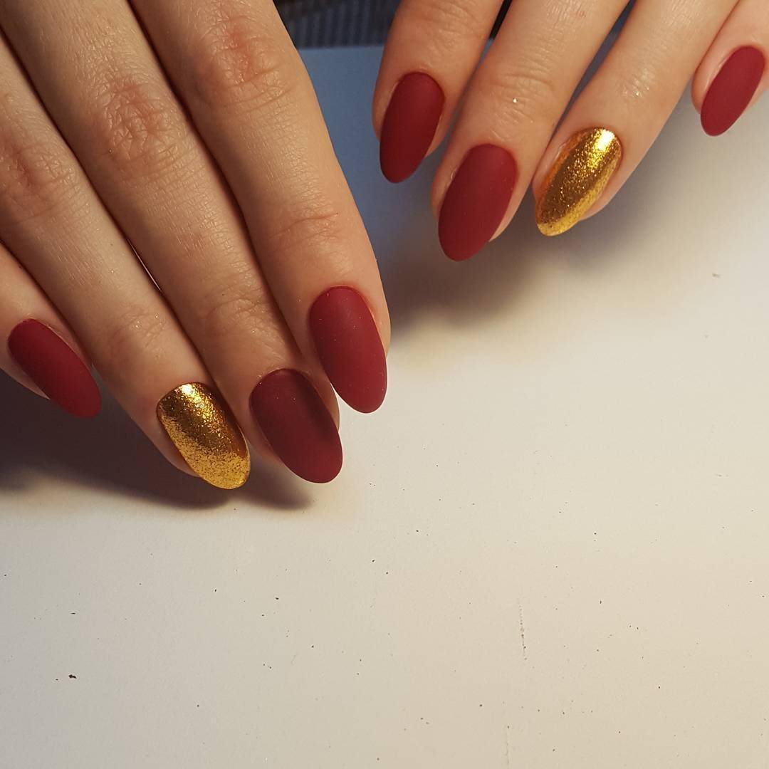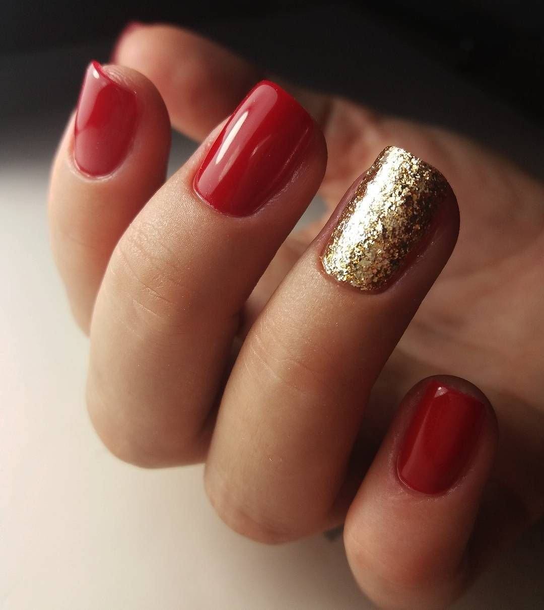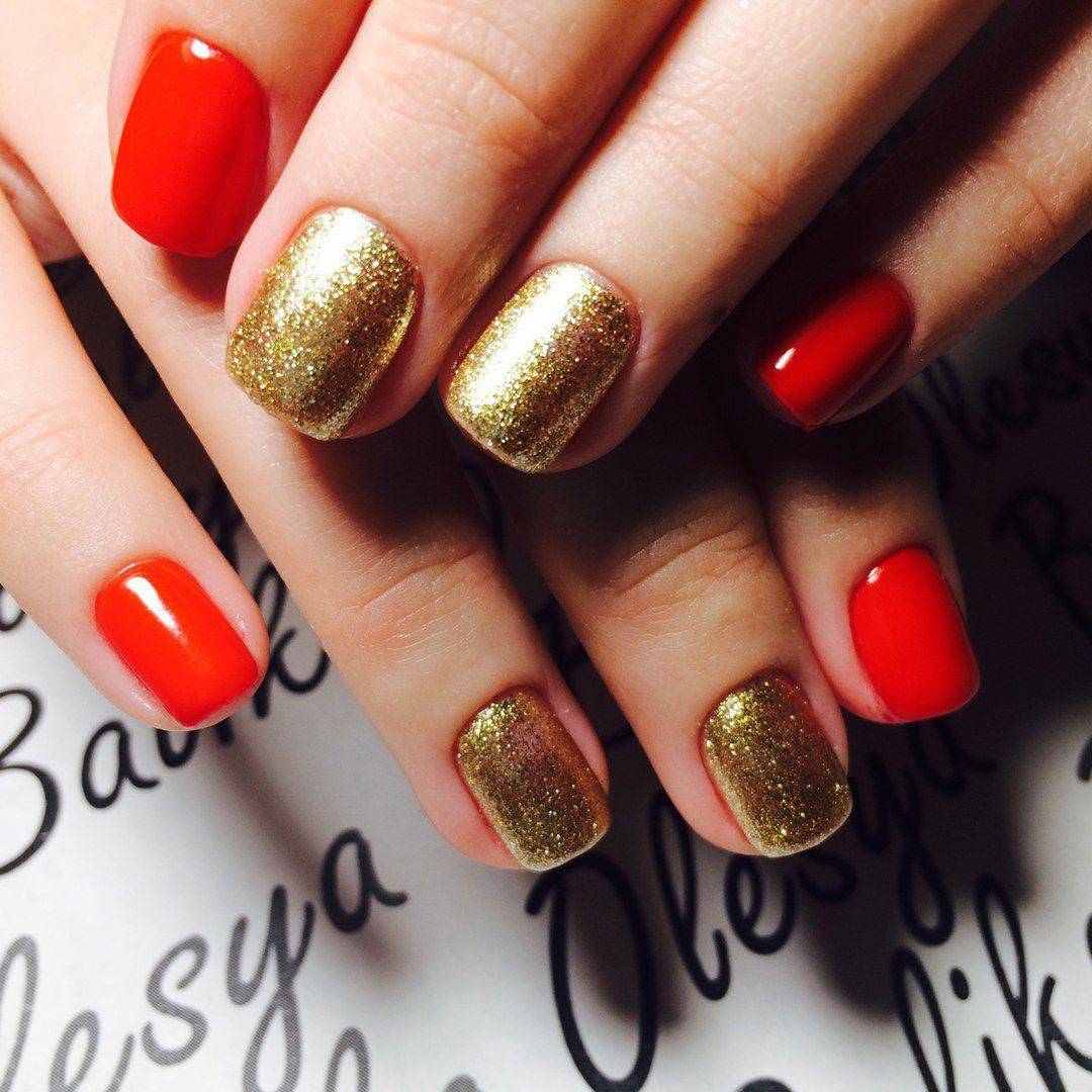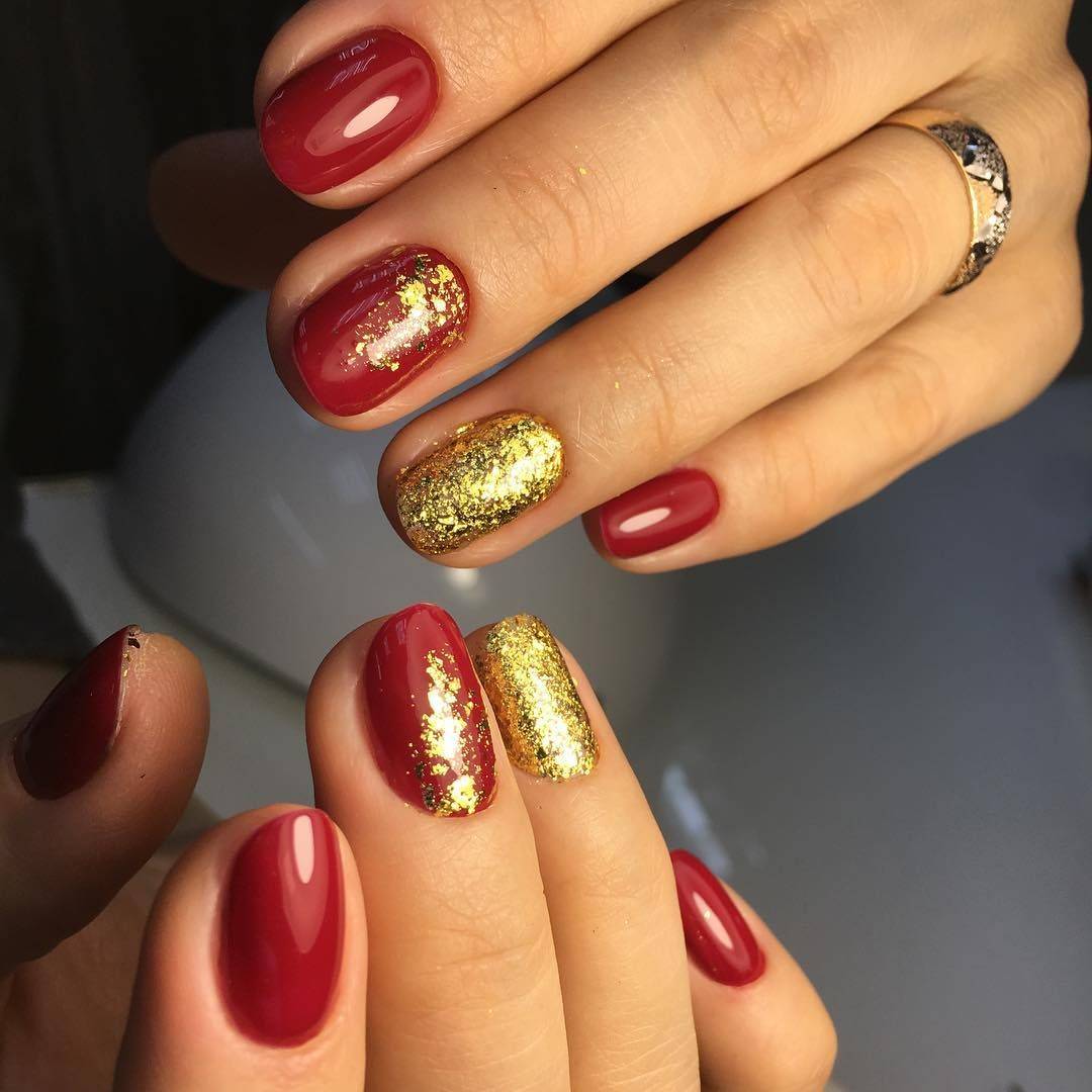 МАНИКЮР КРАСНЫЙ С ЗОЛОТЫМ