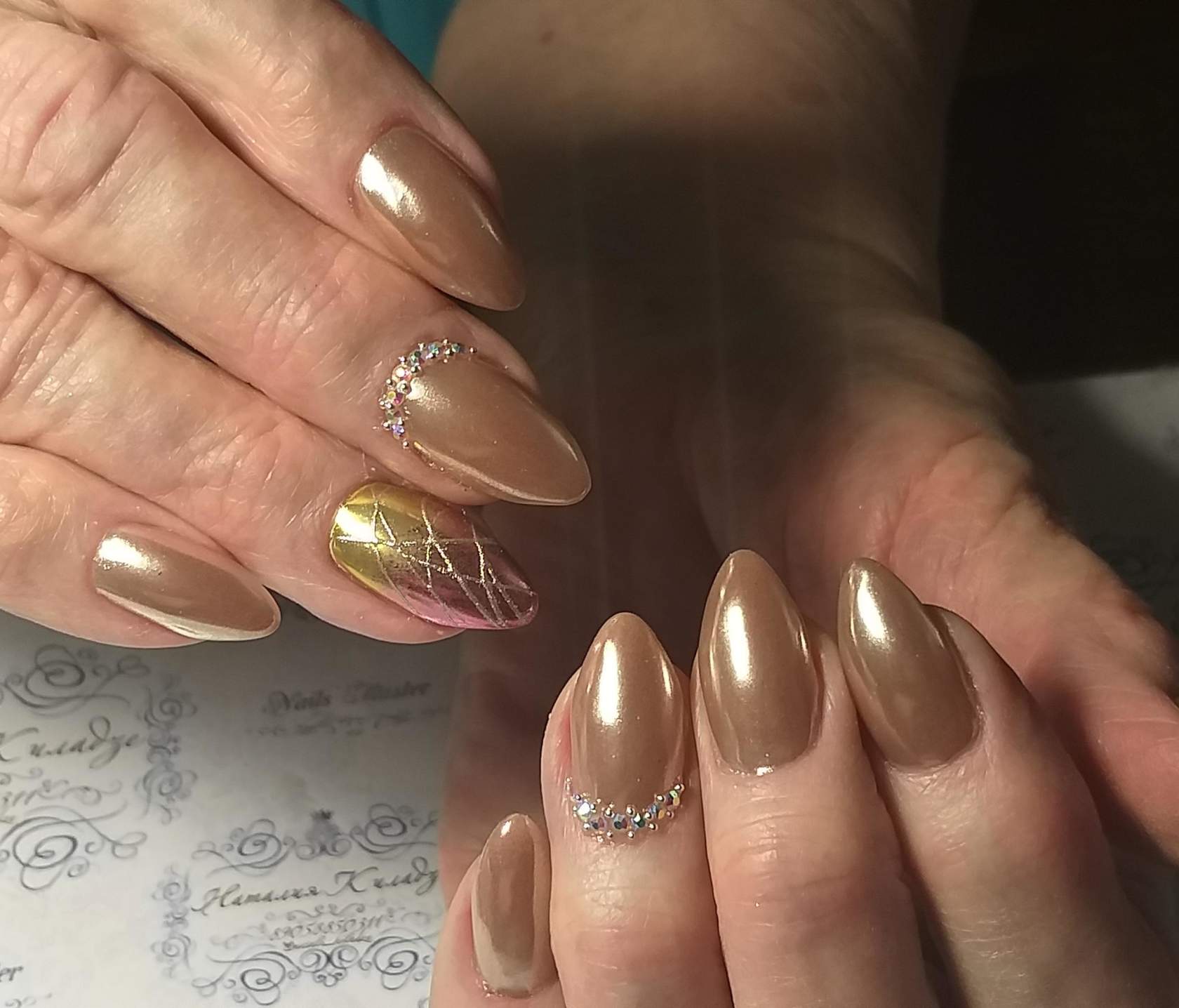 ЗОЛОТОЙ МАНИКЮР, ВЫПОЛНЕННЫЙ С ПОМОЩЬЮ МЕТАЛЛИЗИРОВАННЫХ ЛАКОВ