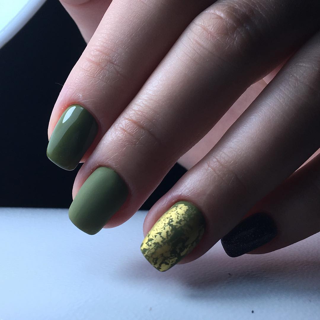 Что будет популярно в 2020 году в ногтевом дизайне? Прежде всего создание различных вариантов текстурированного маникюра, когда в одном дизайне сочетается песок, прозрачность, золото, матовое покрытие и т.д. В моде также будут интересные эффекты в переливами цвета, смешение различных оттенков. Для осеннего маникюра 2020 актуален стиль милитари. Впрочем, лучше любых слов о свежих новинках в дизайне ногтей расскажут фото.