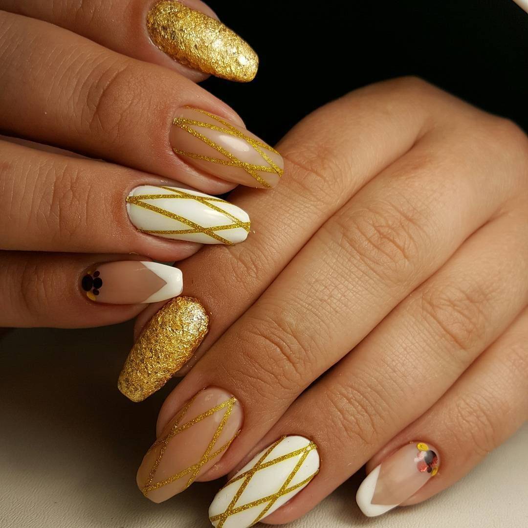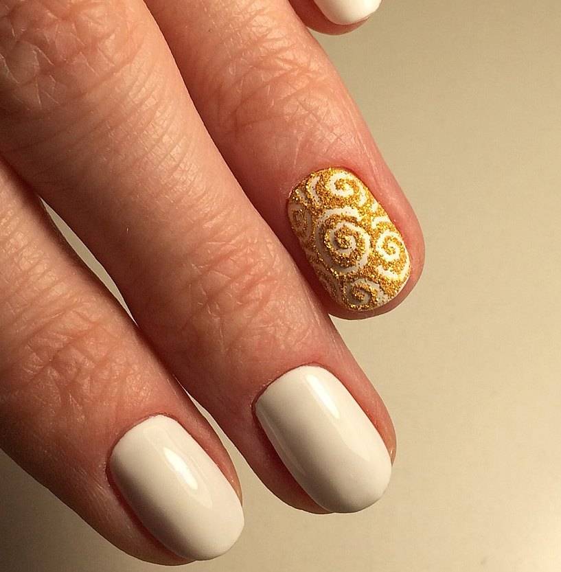 МАНИКЮР БЕЛЫЙ С ЗОЛОТЫМ