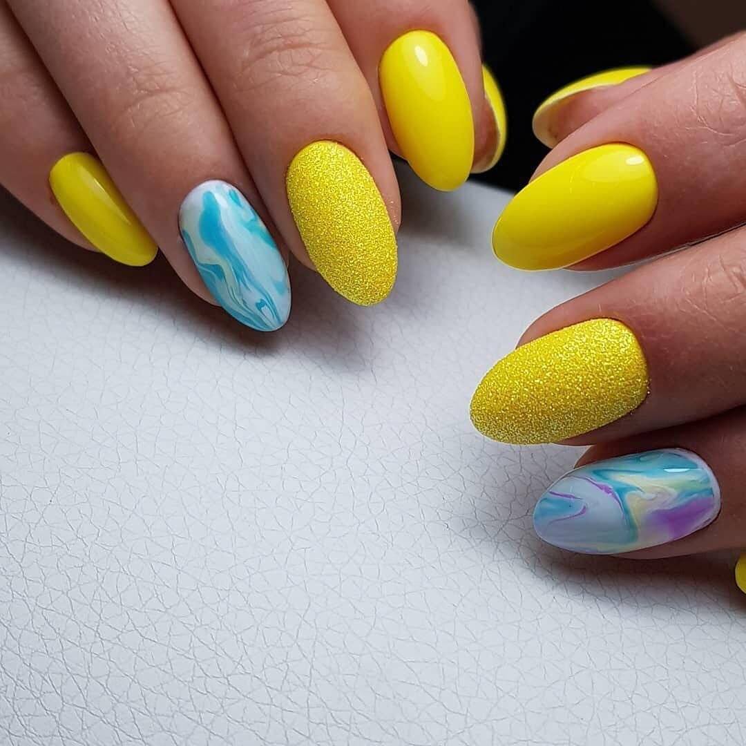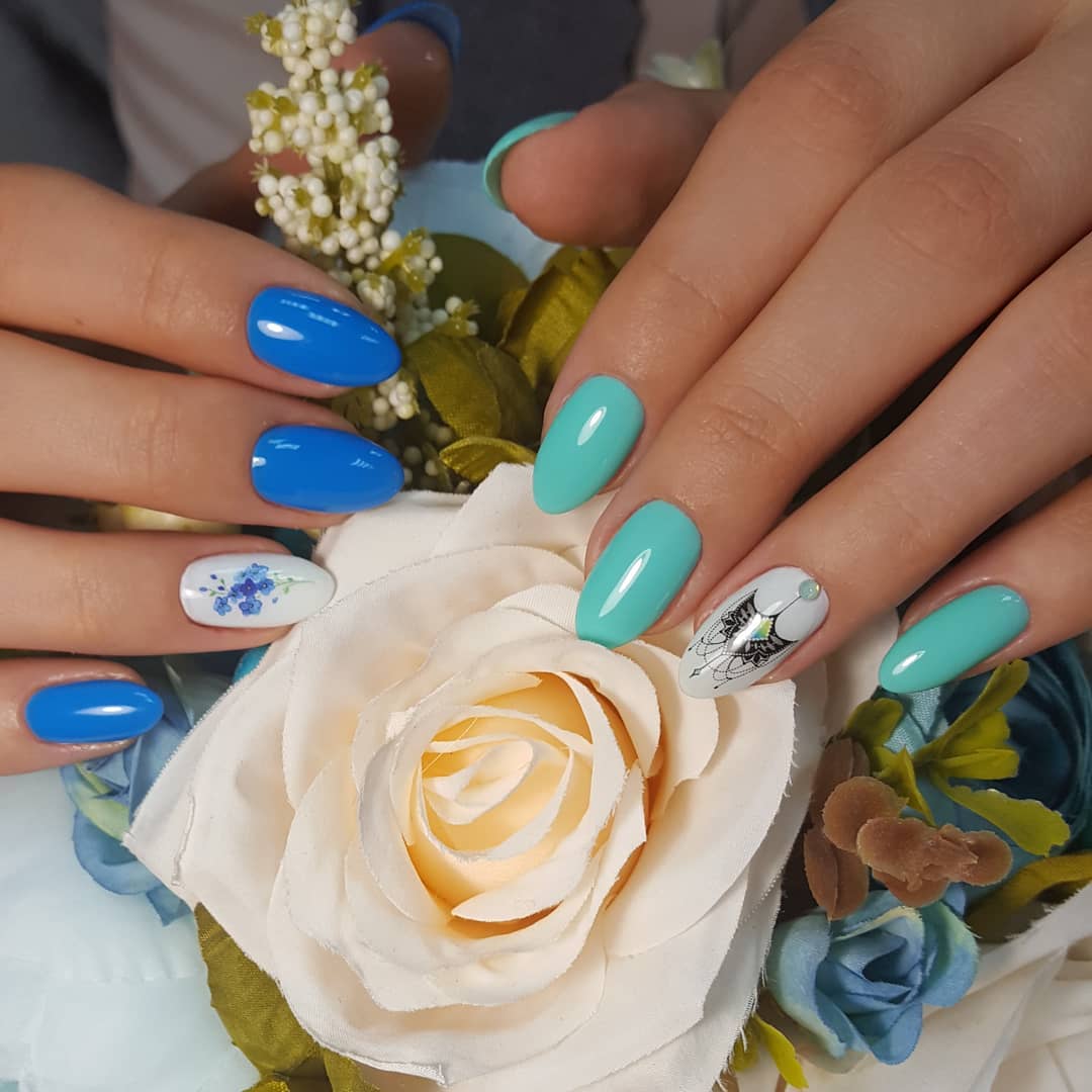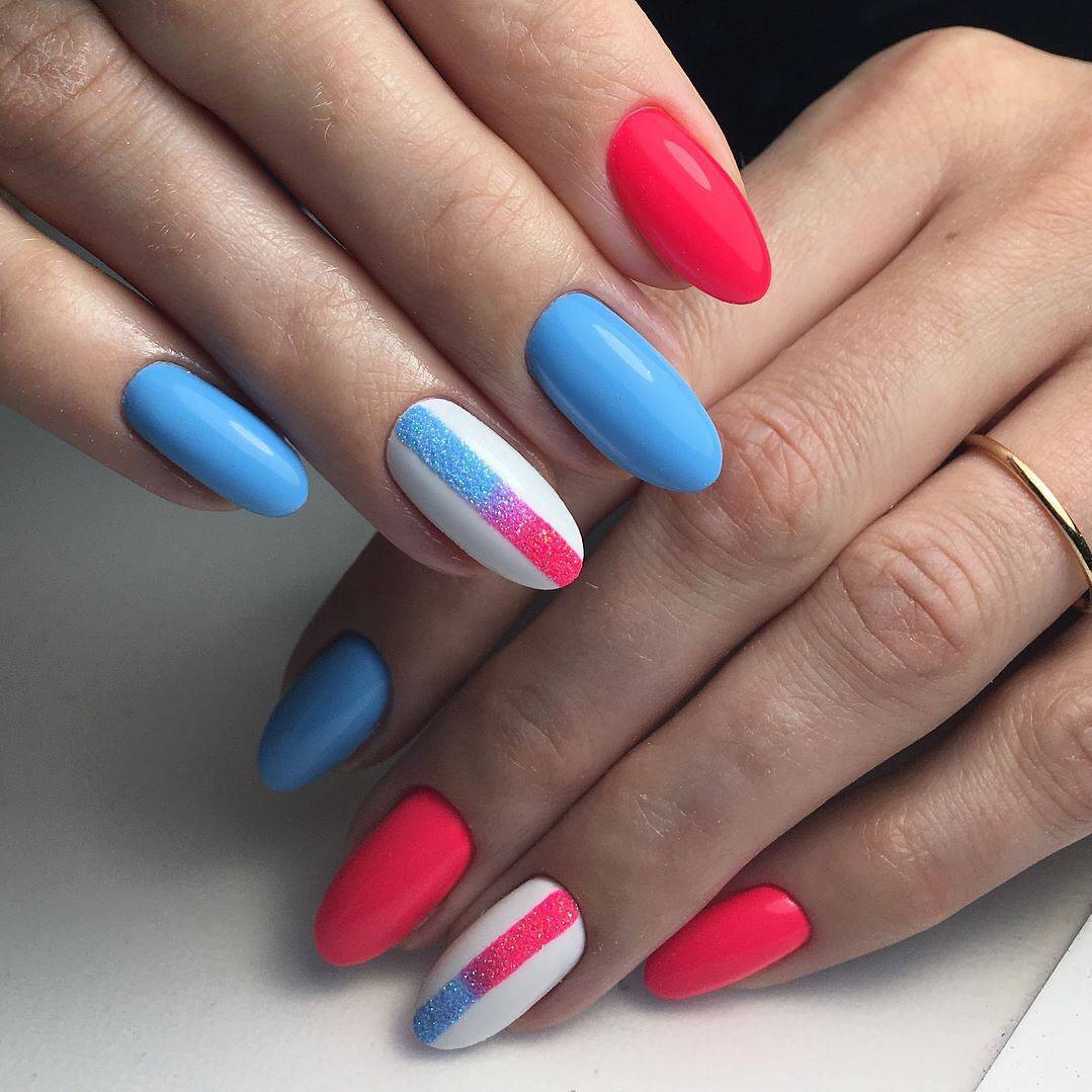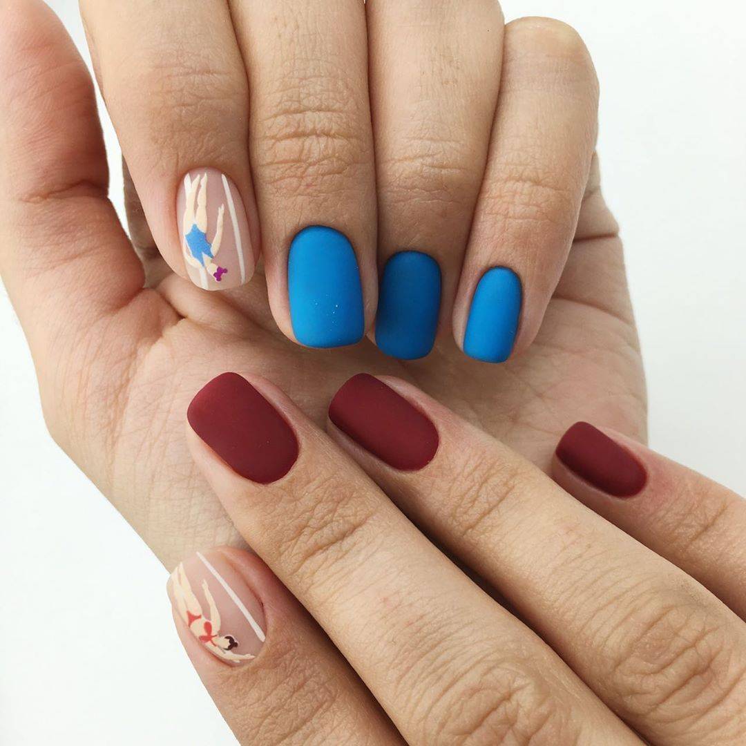Синий цвет яркого цвета отлично подходит для пляжа, более холодные оттенки следует оставить до зимы и осени. Синий цвет лучше комбинировать с другими лаками. От этого ваш синий маникюр получится более изысканным и насыщенным.