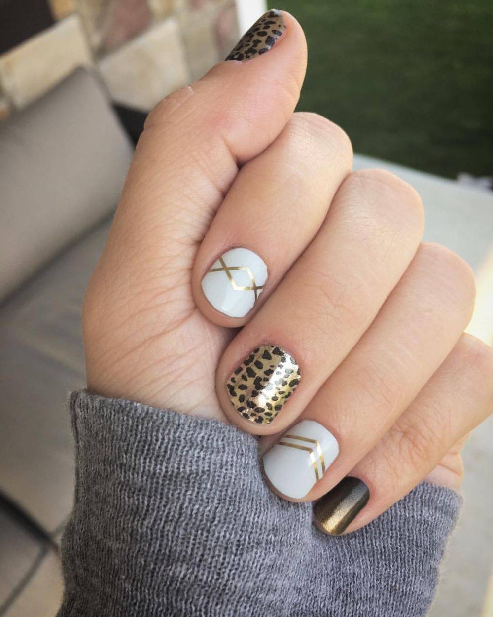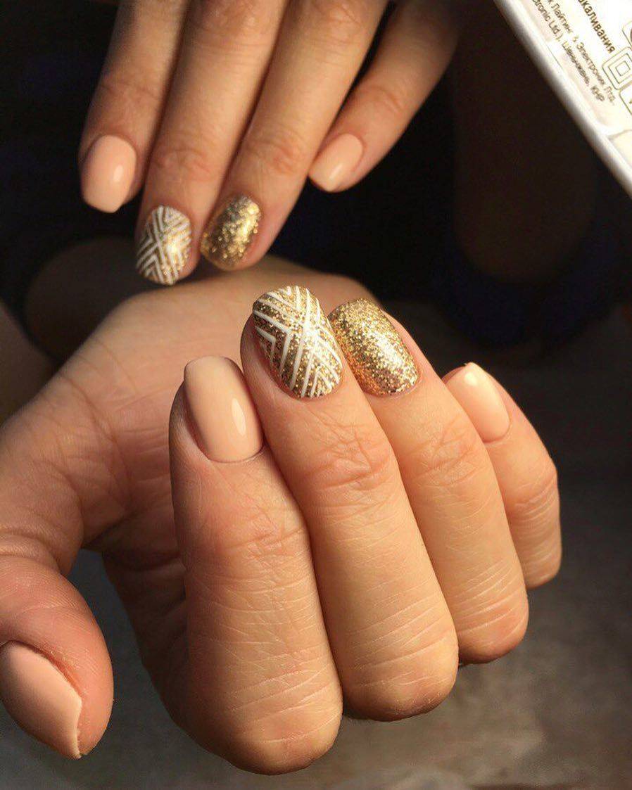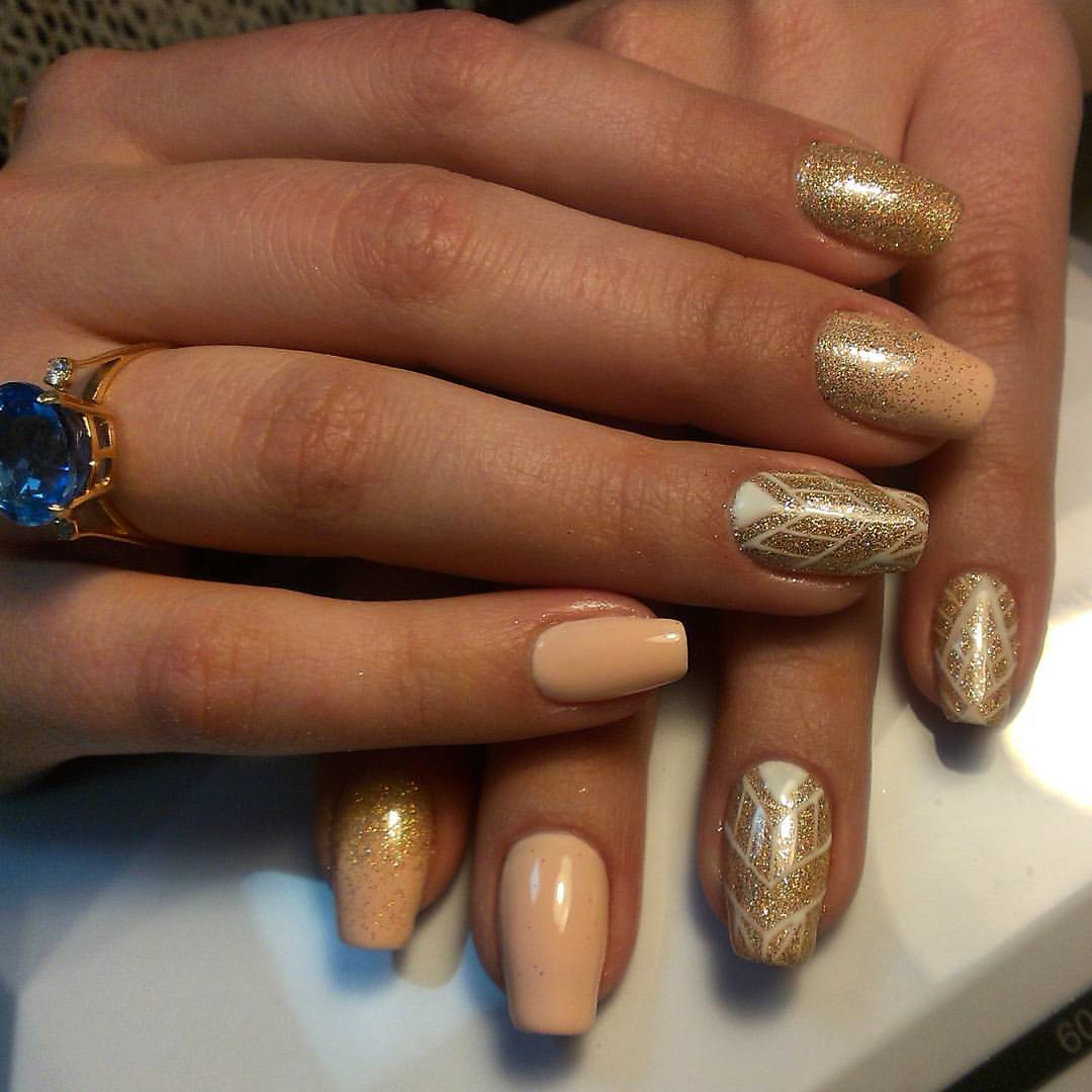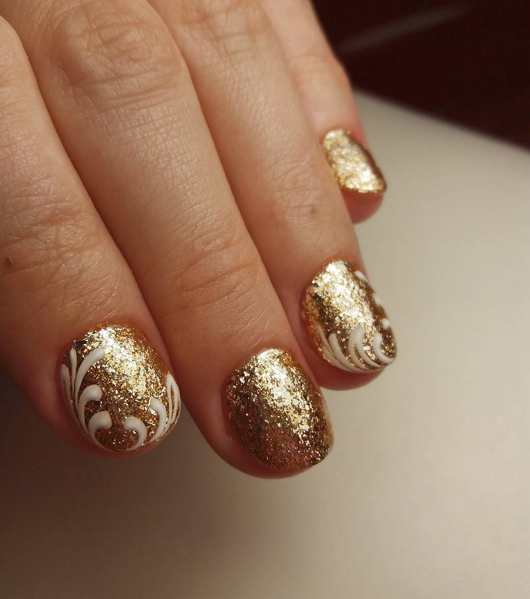 Повседневный маникюр предполагает минимум использования блесток и золотых оттенков. Если же вы хотите украсить свои ногти этим цветом, то используйте его только лишь для оформления, например в качестве узора, который может повторять орнамент кофточки или костюма.