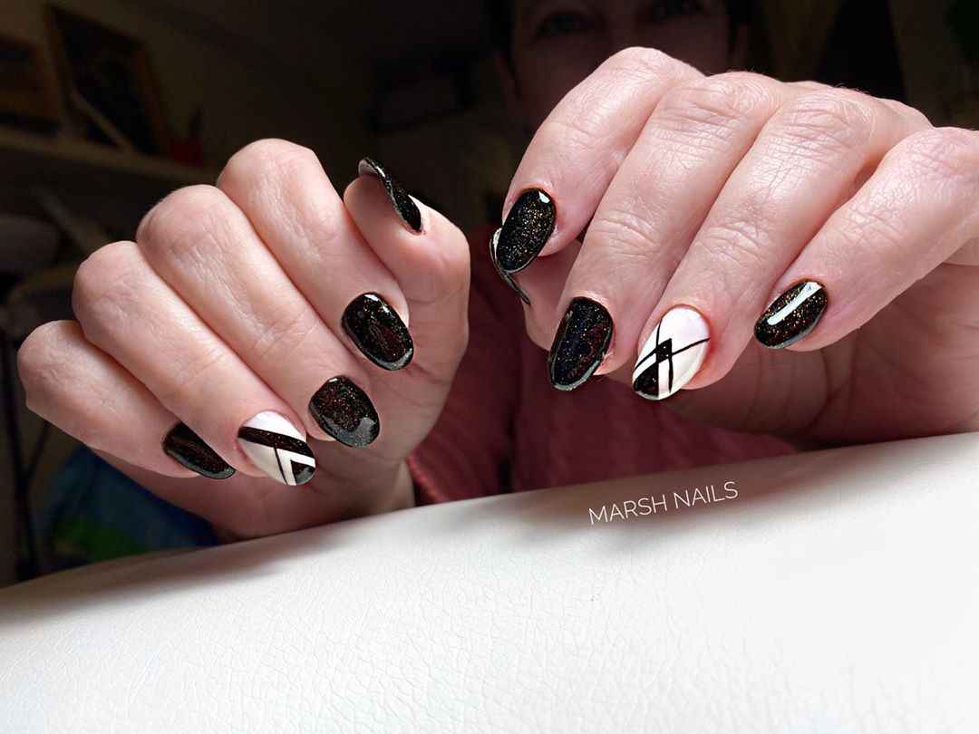 Соединение тех или иных оттенков может дать весьма оригинальный результат. Контрастные нейл-арты выглядят объемно, интересно и заметно. Самое популярное и часто используемое сочетание – это черный и белый. Этот тандем позволяет создать множество стильных нейл-артов, например, отлично смотрится французский маникюр в черно-белом цвете, однотонное покрытие, нейл-арты с геометрией, флористикой, хищным декором.